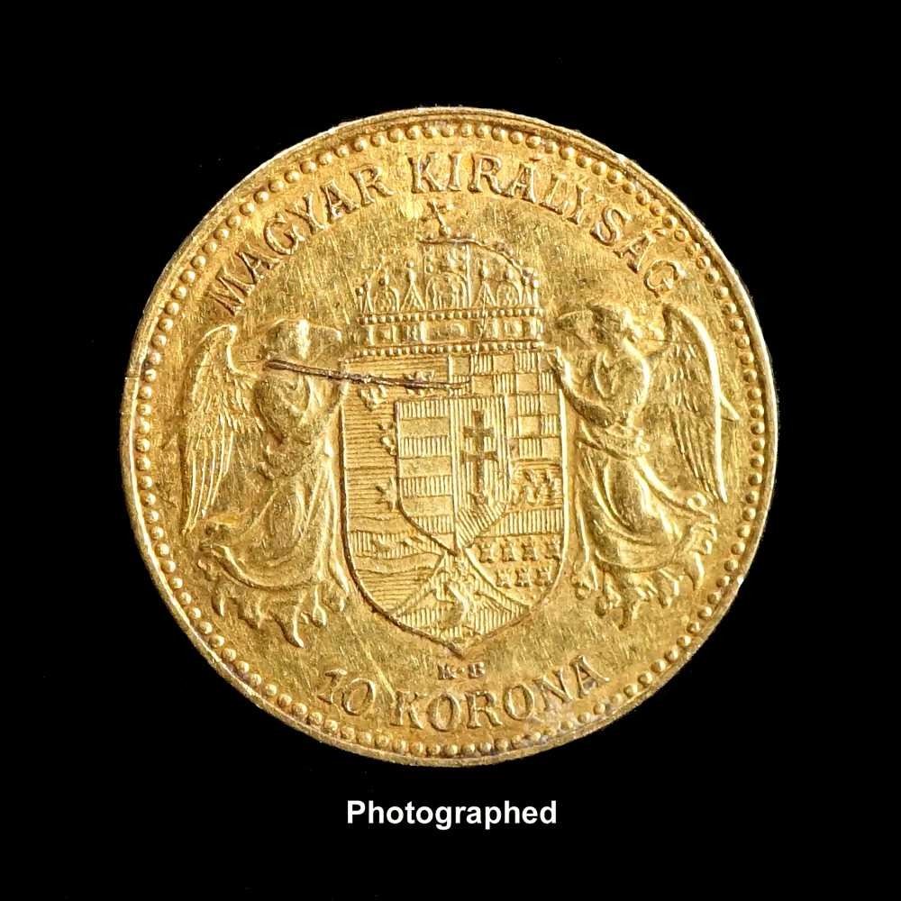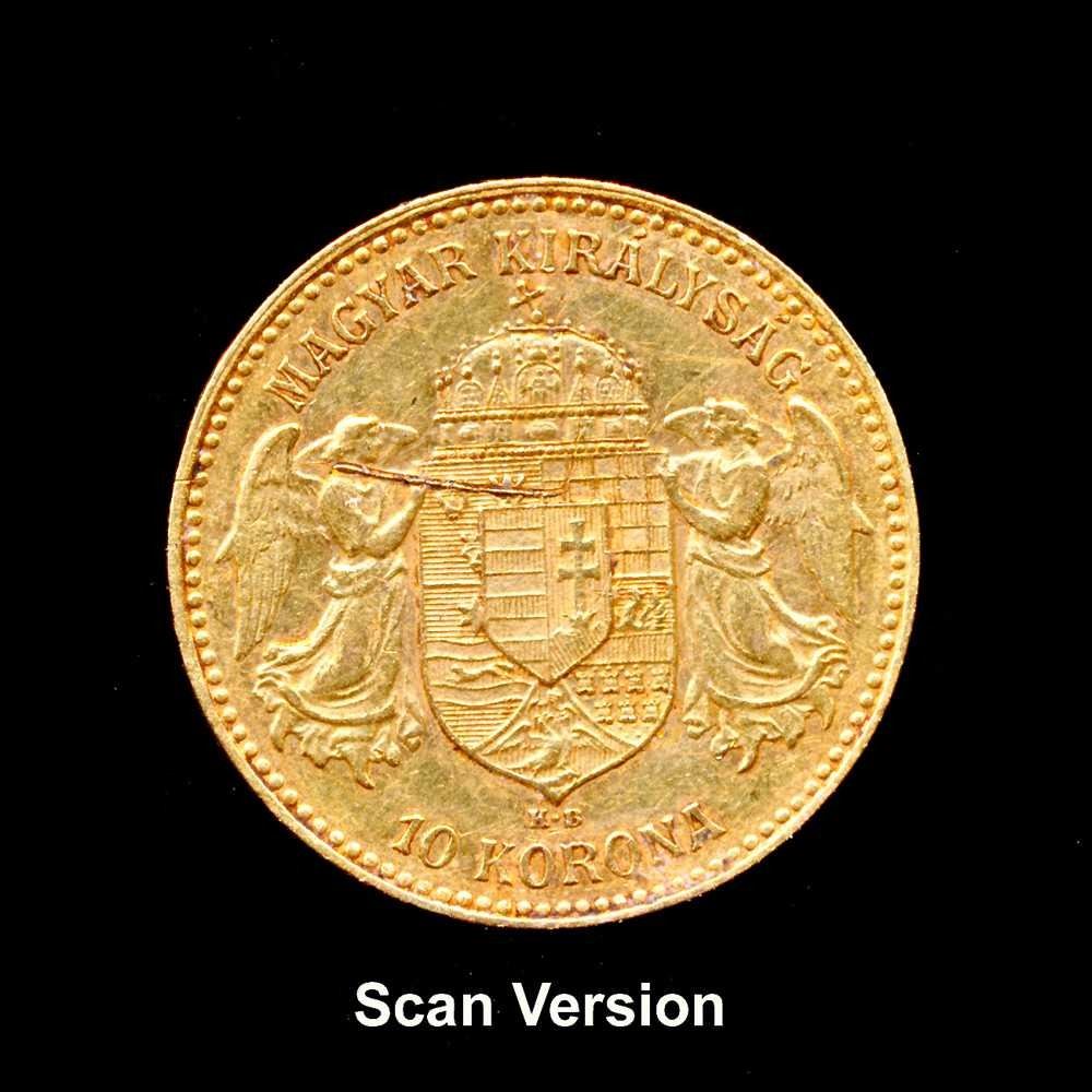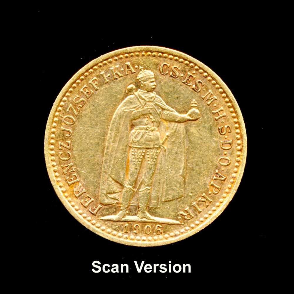 HONGRIE - 10 korona 1906 avec une spectaculaire cassure de coin au revers