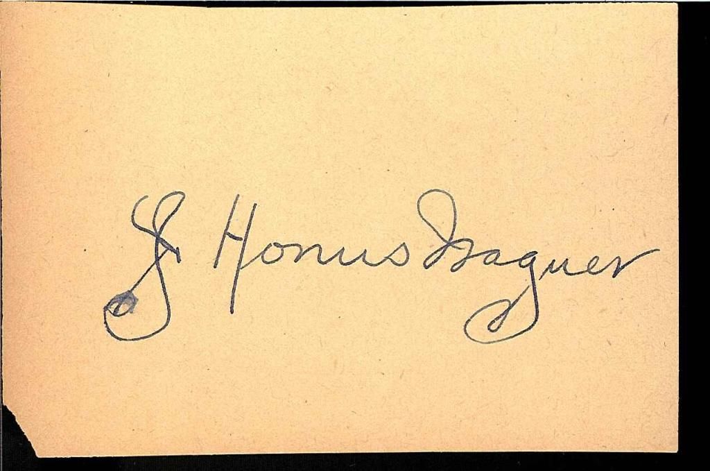 CUT SIGNATURE OF HONUS WAGNER IN BLACK INK. SIGNATURE COMES WITH LETTER OF CERTIFICATION FROM ACE (AUTOGRAPH CERTIFICATION EXPERTS) #B40401. AS SHOWN. VIEW PICTURE FOR DETAIL.