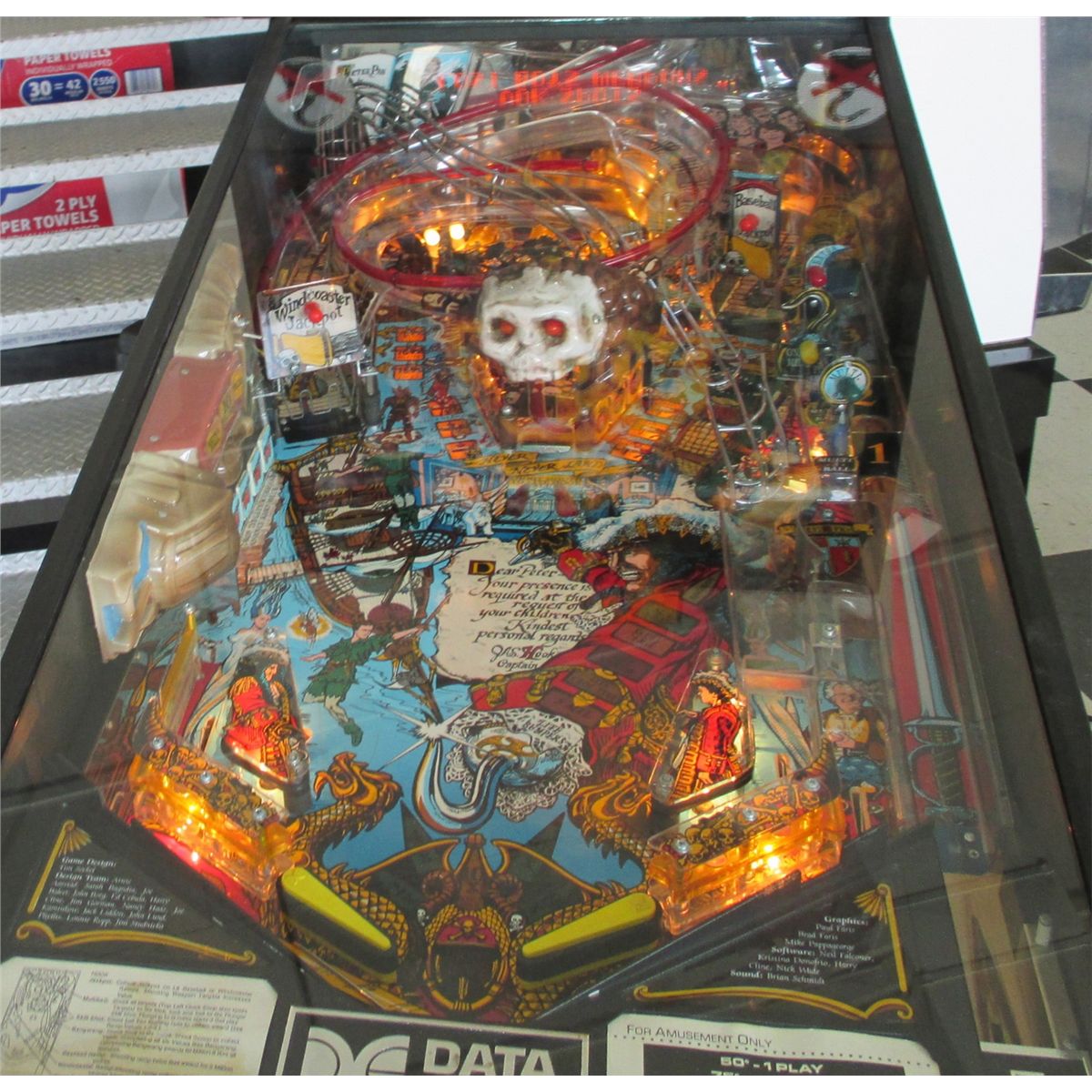Based on the hit movie with Robin Williams as Peter Pan and Dustin Hoffman as Captain Hook, this Data East pin is one that the entire family can enjoy. This game is in very good condition from the cabinet to the playfield. It also has the hard to find topper. All functions have been checked by a trained technician for proper operation. The playfield has been cleaned and polished. Worn rubber and burnt bulbs have been replaced. We warranty the electronic PCBs for 30 days. Simply return for free replacement or repair.
