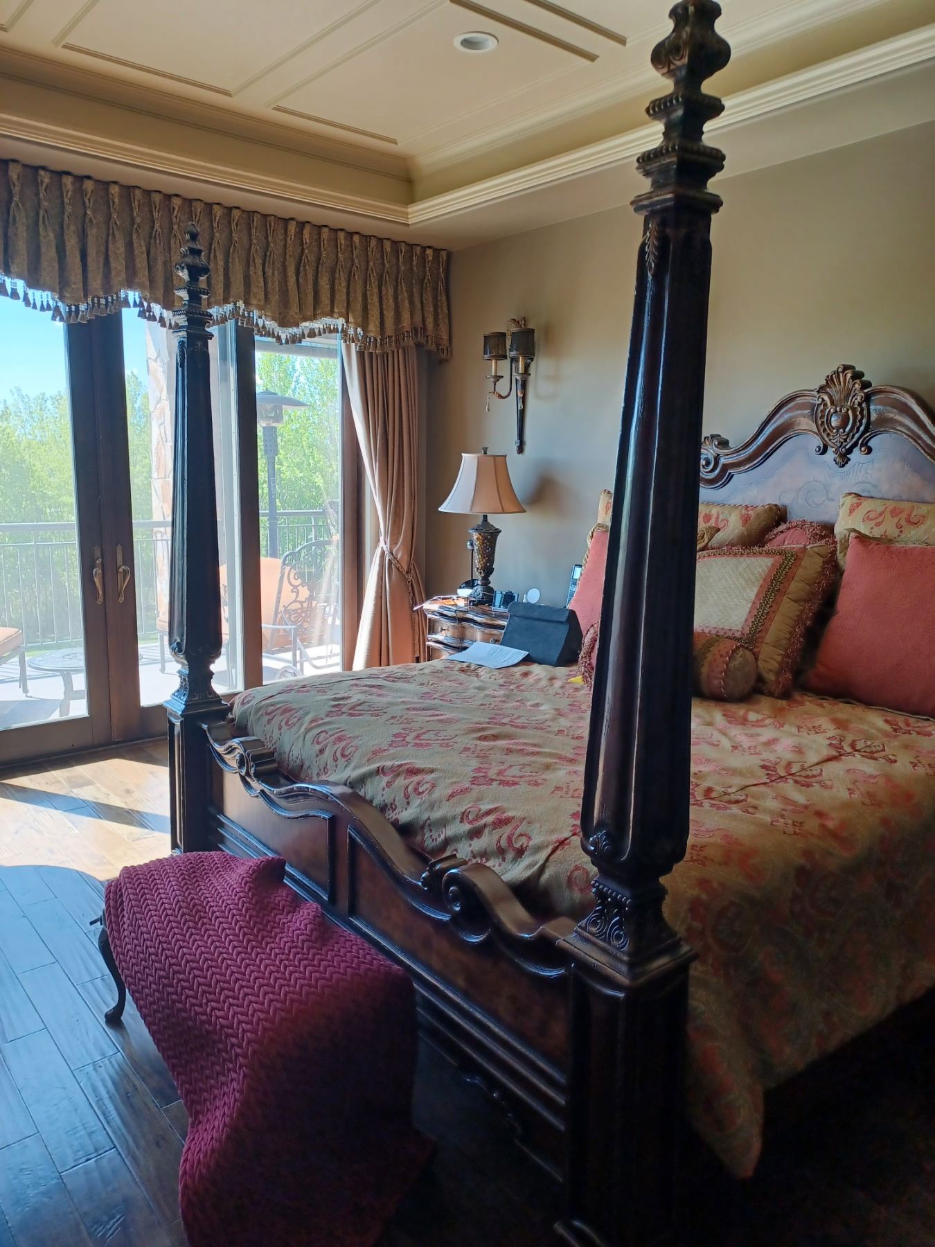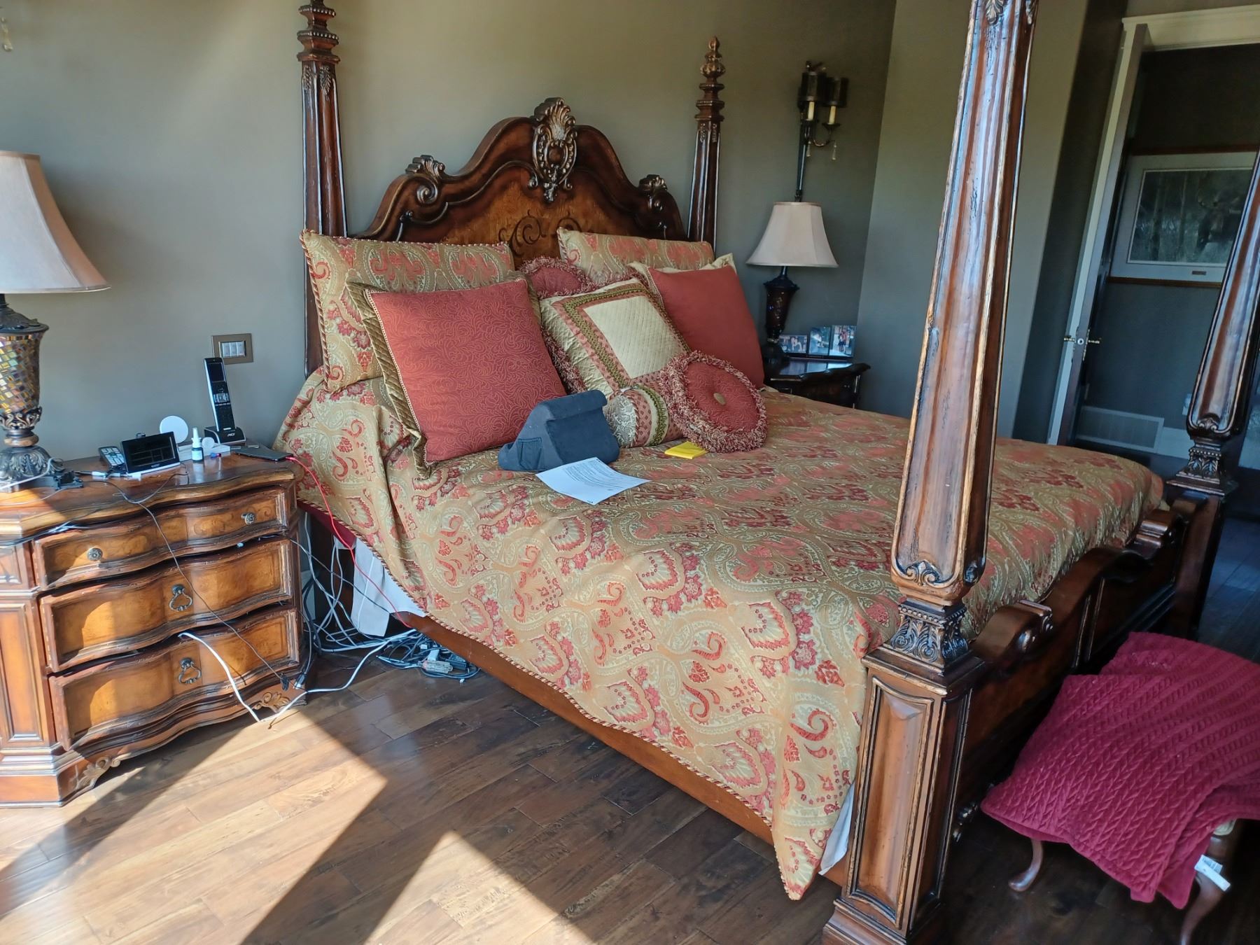 HOOKER FURNITURE PILLAR KING SIZE BED WITH TWO END TABLES COMES WITH MATTRESS