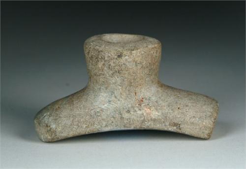 HOPEWELL TYPE MONITOR PIPE. Ohio pipe stone. Middle Woodland, Circa 200BC style-500AD style. SIZE: 3in. l x 1-1/2in. h. CONDITION: Very good. 9-25984-33 The Tennessee Collection of Prehistoric Indian Artifacts from the Allen Graves Estate. SPECIAL NOTE: We do not regularly sell Prehistoric Indian stone artifacts and therefore have very little experience and no expertise in this area. All of the following lots have come from the Collection of the Late Allen Graves of Tennessee. The collection was inherited some years back by his daughter, who now lives in Maine. This collection was consigned to us directly from her. We employed someone to generally identify styles and types, but as stated above, due to our lack of expertise in this field, we can not guarantee the age or origin of the following pieces. We are relying on you, the buyer, to determine to your satisfaction the origin and age of each item in the collection.