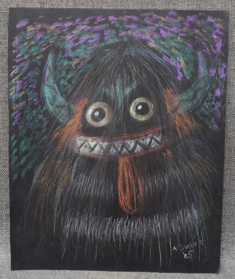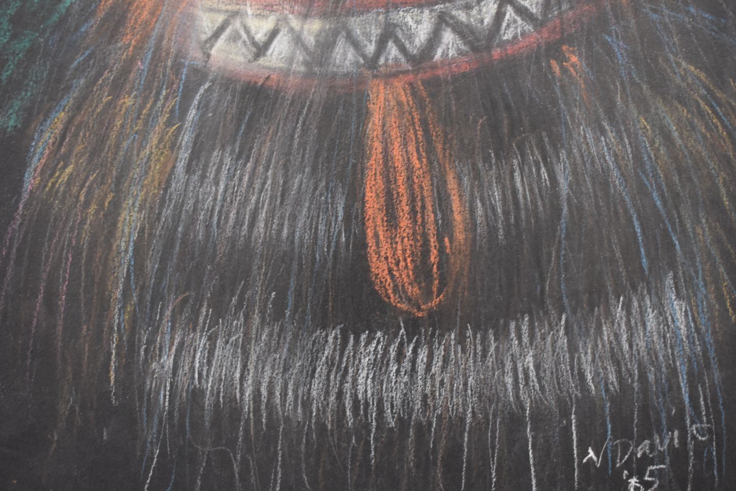 1985 Hopi Indian hand drawn pastel on paper depicting kachina signed Neil David 14" x 11"