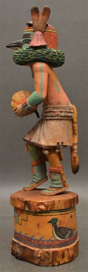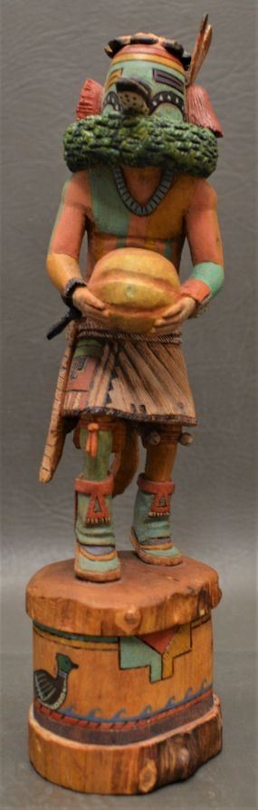 1980's Hopi Indian kachina. Hand carved and painted cotton wood , signed Woody Sewemaenewa. 9'' tall