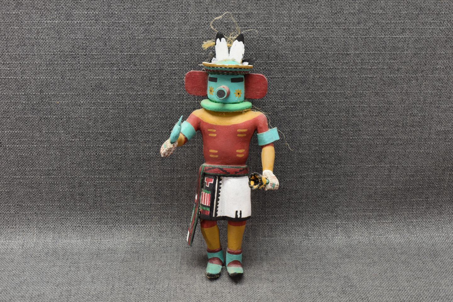 1970-80's Hopi Indian hand carved and painted cottonwood 10.5" tall foot has been broken and glued