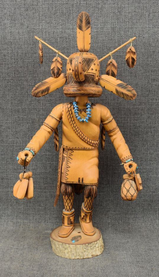 1980-90's Hopi Indian carved Wuwuyomo kachina 16" tall