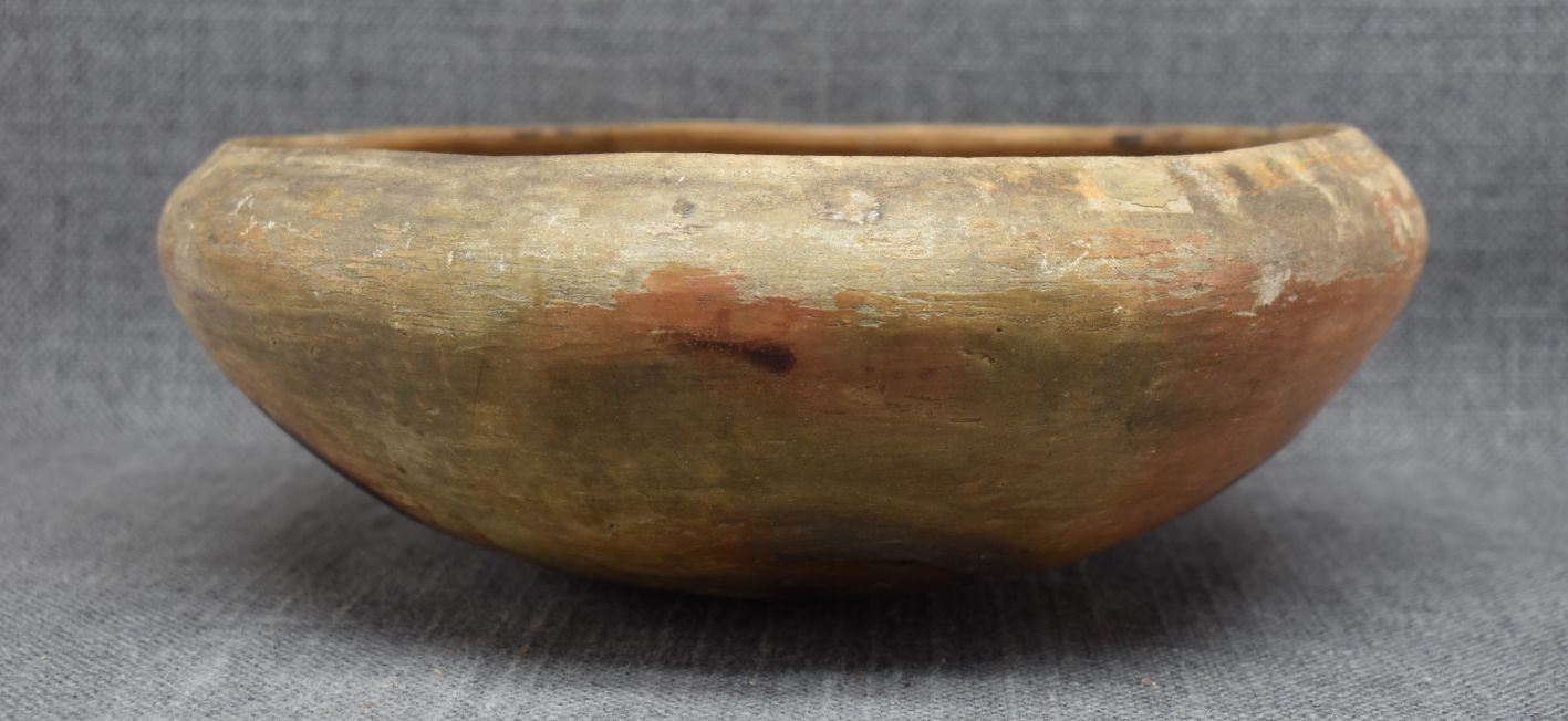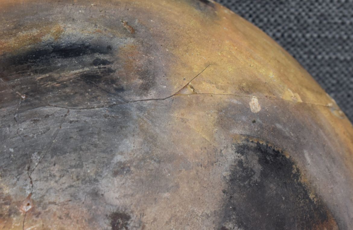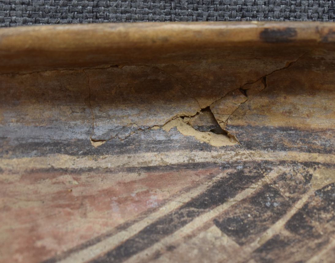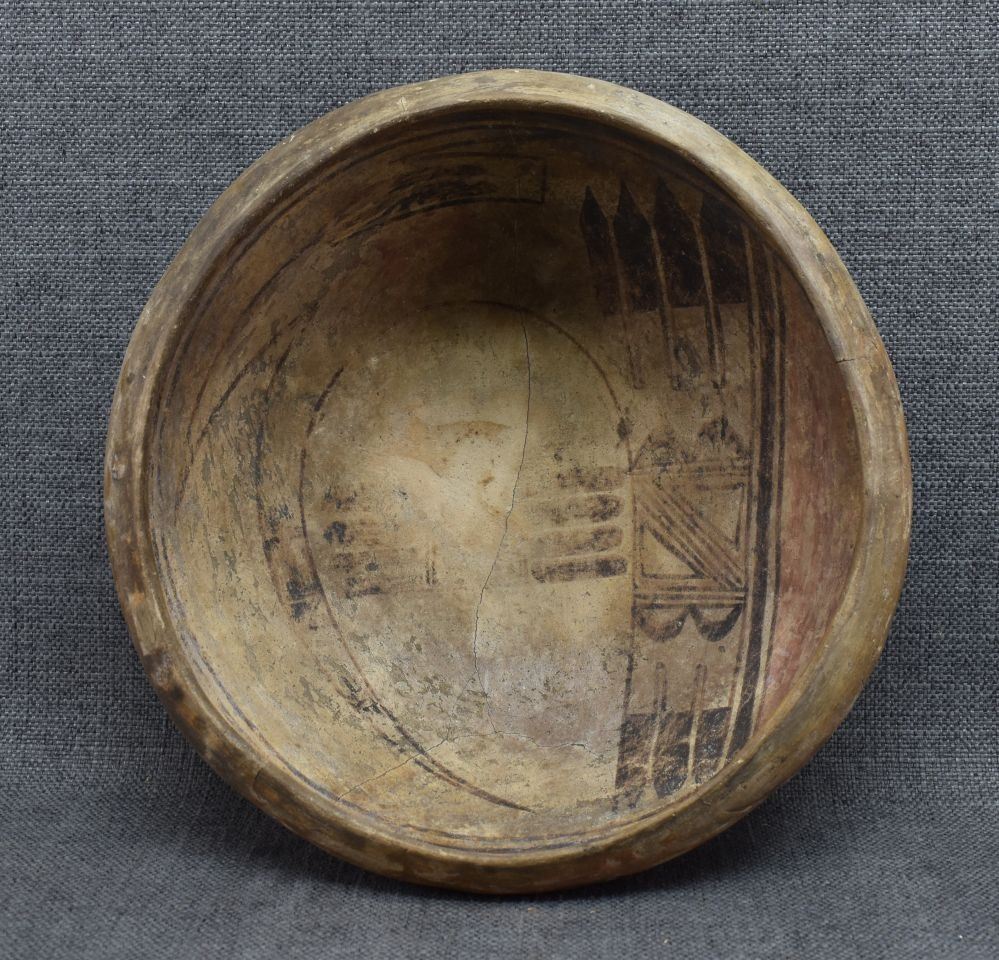 1900's Hopi Indian. Hand coiled and painted design pottery bowl. 4'' x 10''has been broken and glued