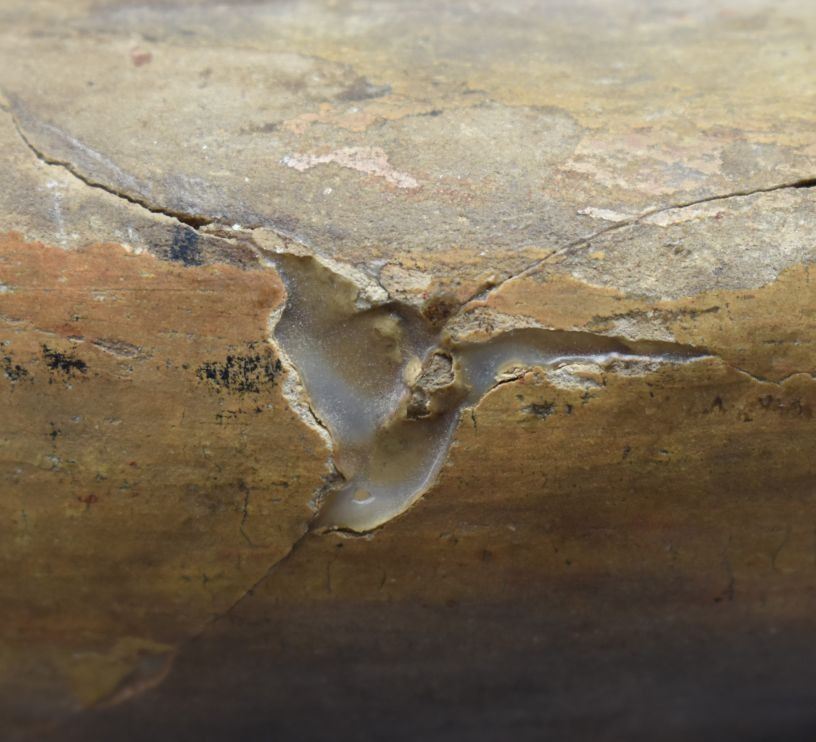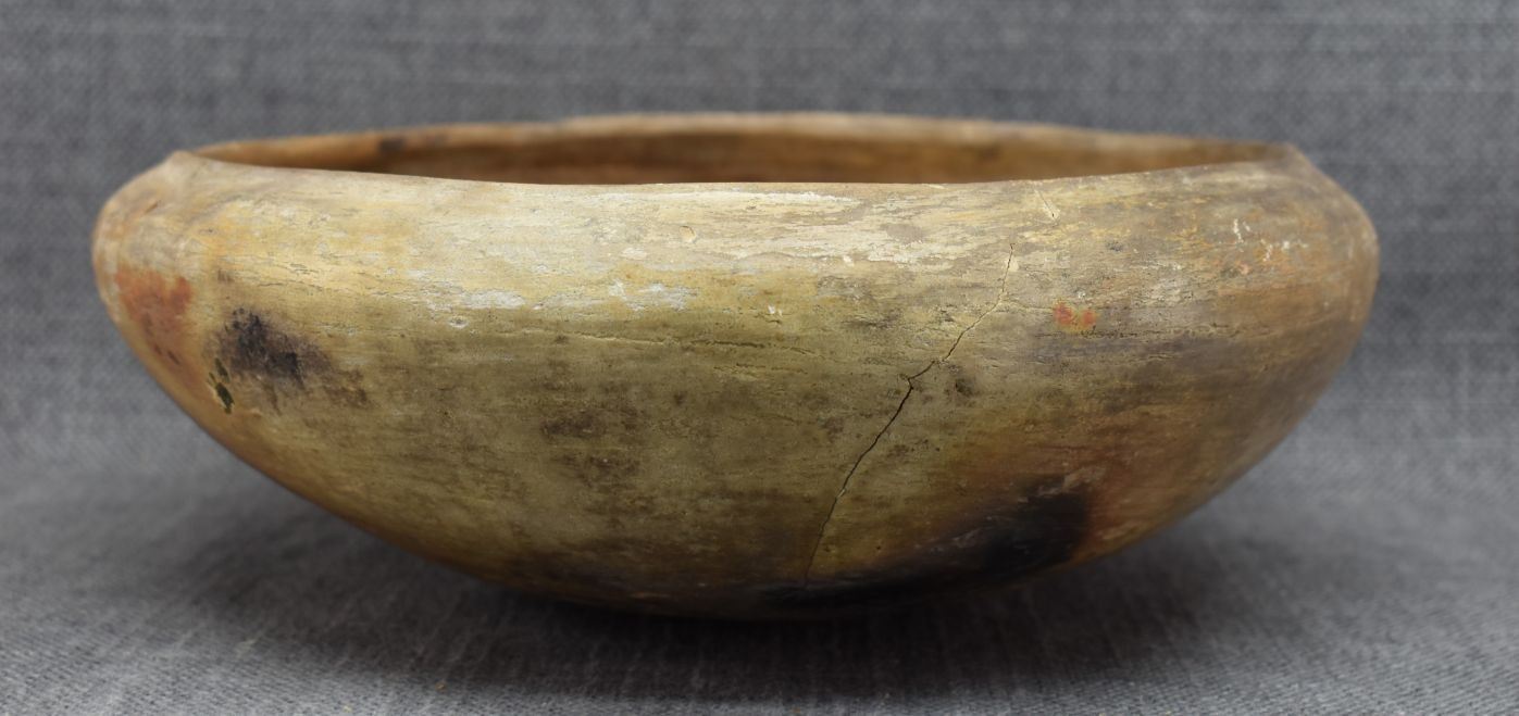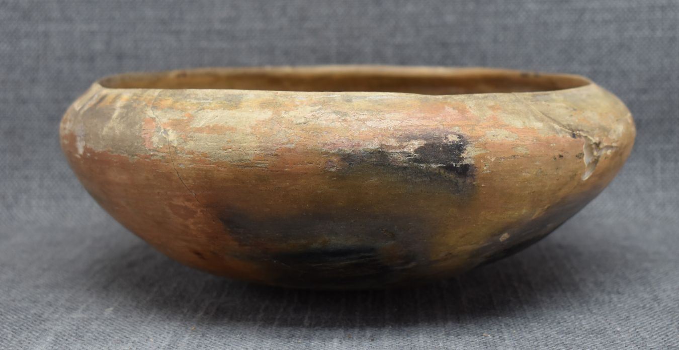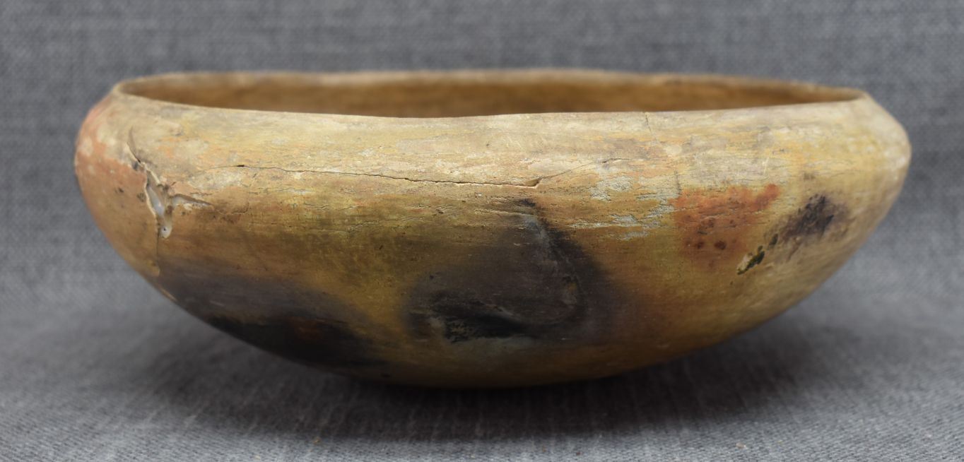 1900's Hopi Indian. Hand coiled and painted design pottery bowl. 4'' x 10''has been broken and glued