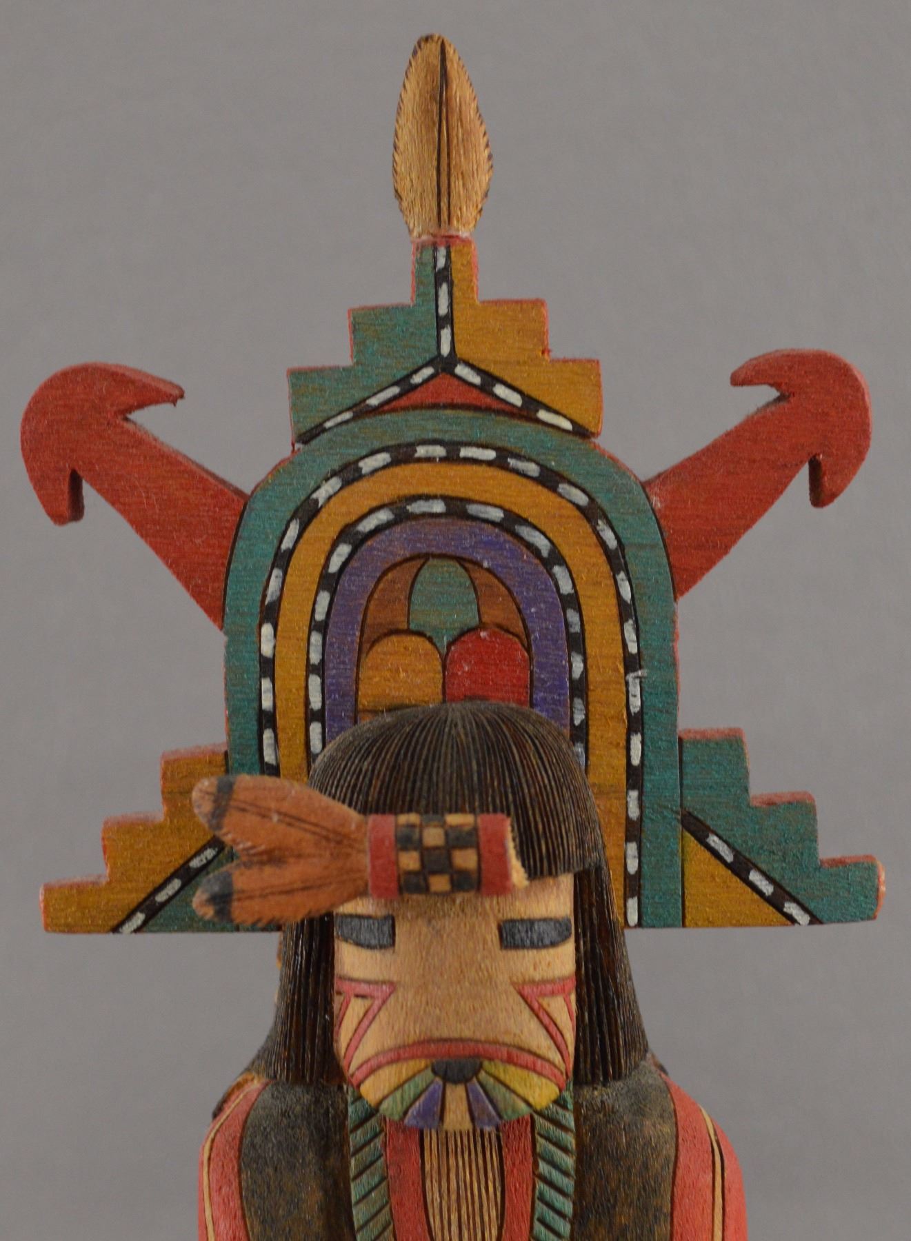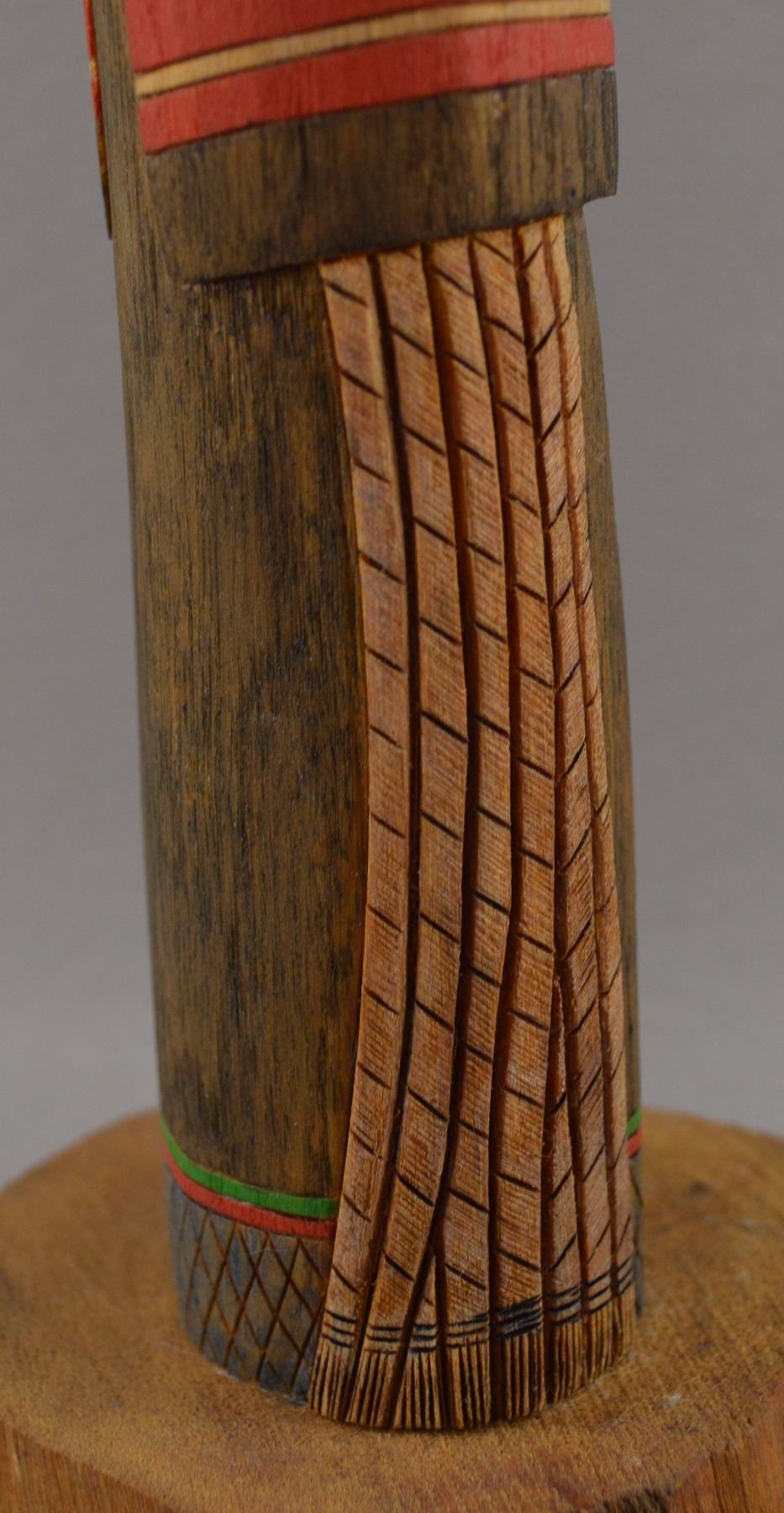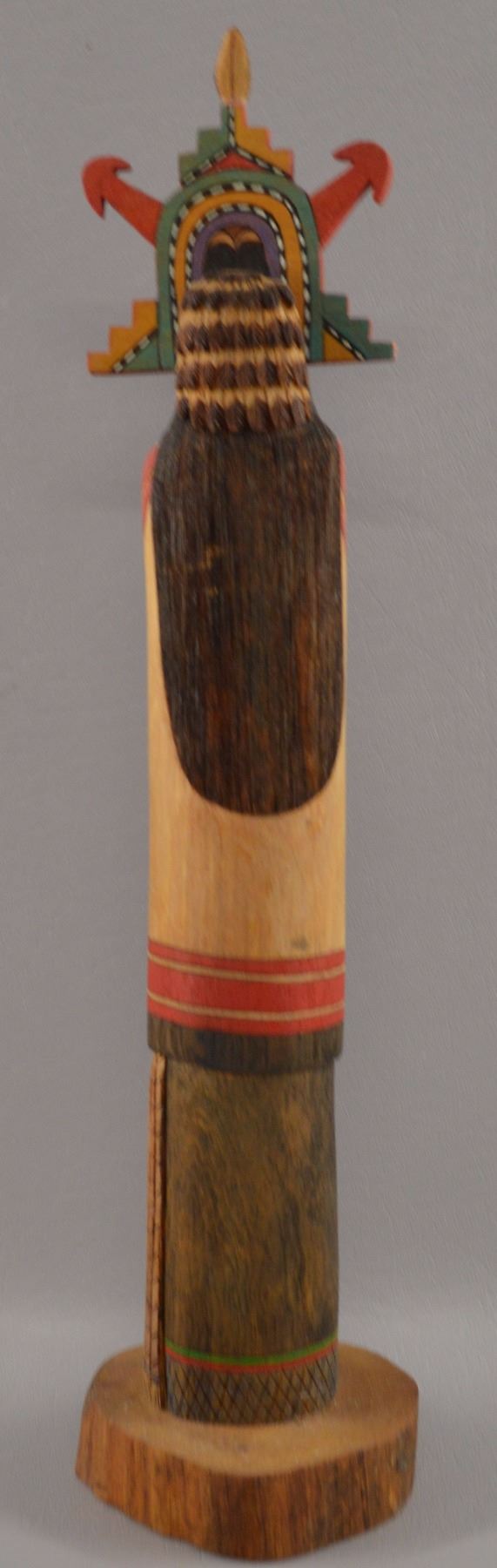 1980's. Hand carved and painted long haired kachina with tableta. has missing feather. Signed M. Bilanedy