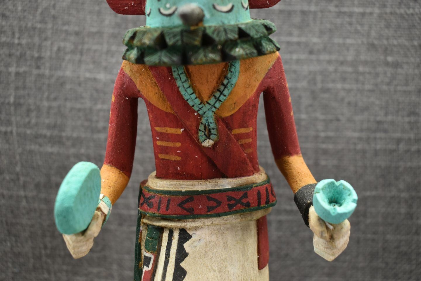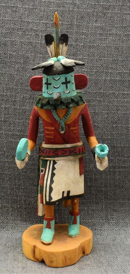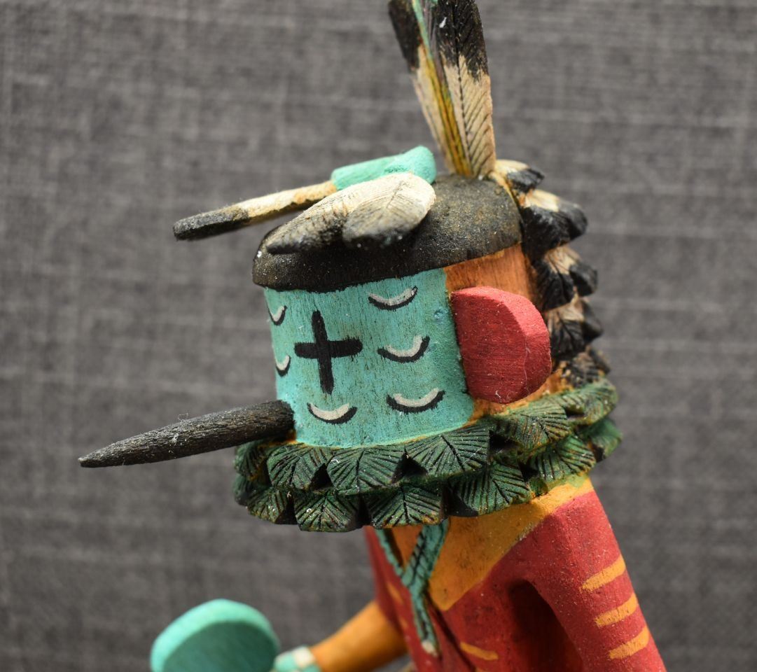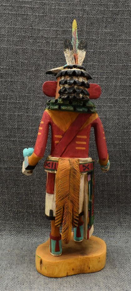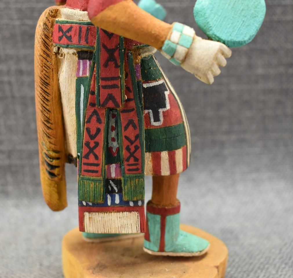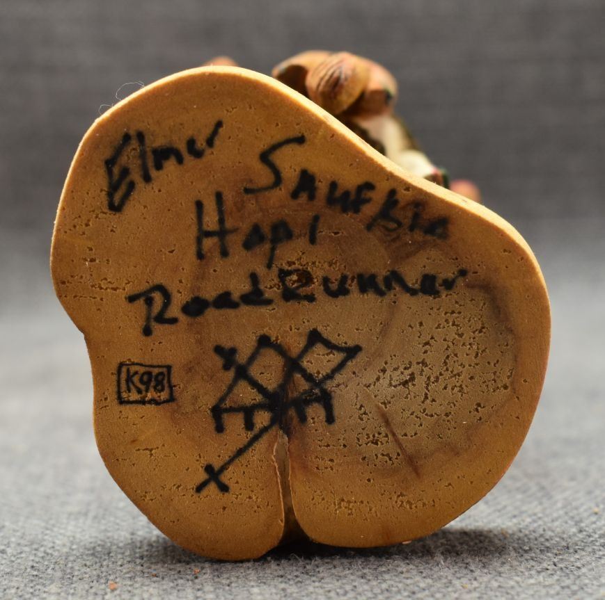 1990's Hopi, carved and painted cottonwood depicting Roadrunner kachina by Elmer Saufkie, 11.25" tall