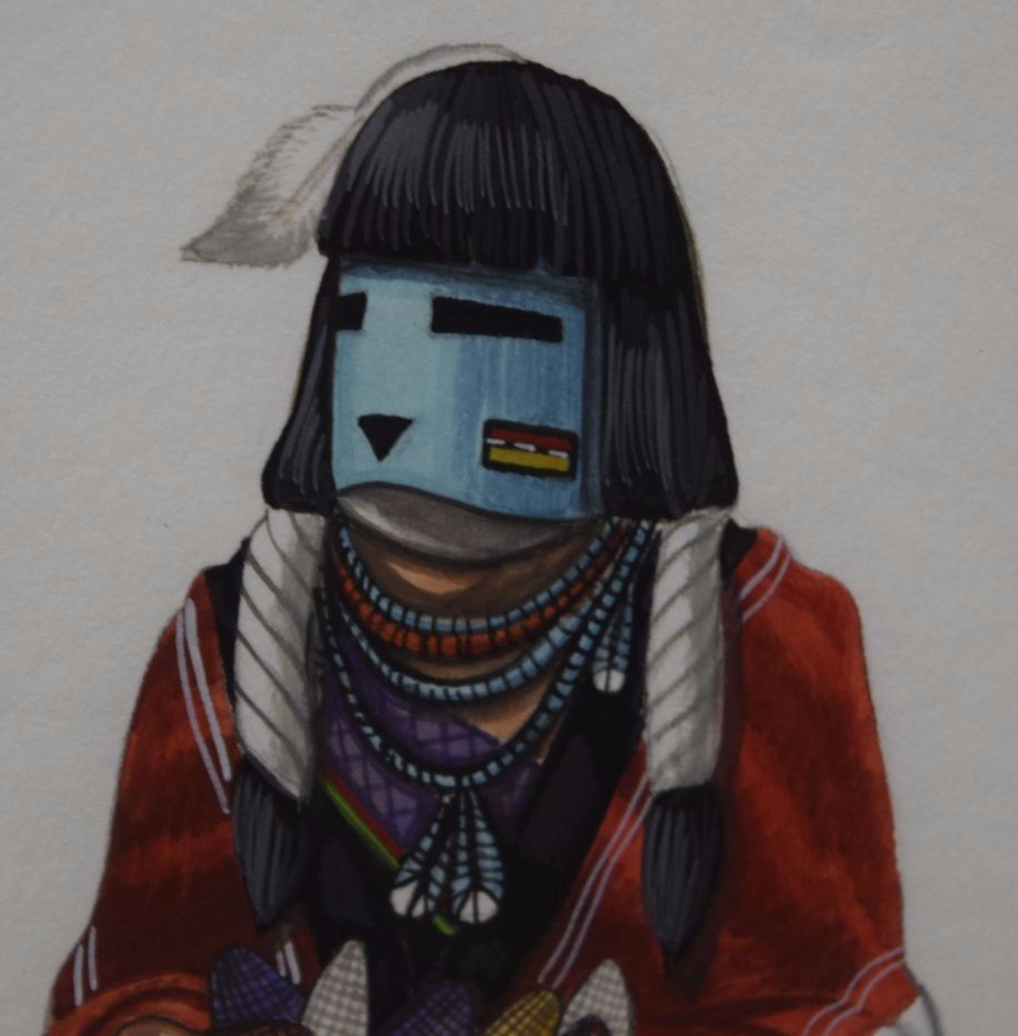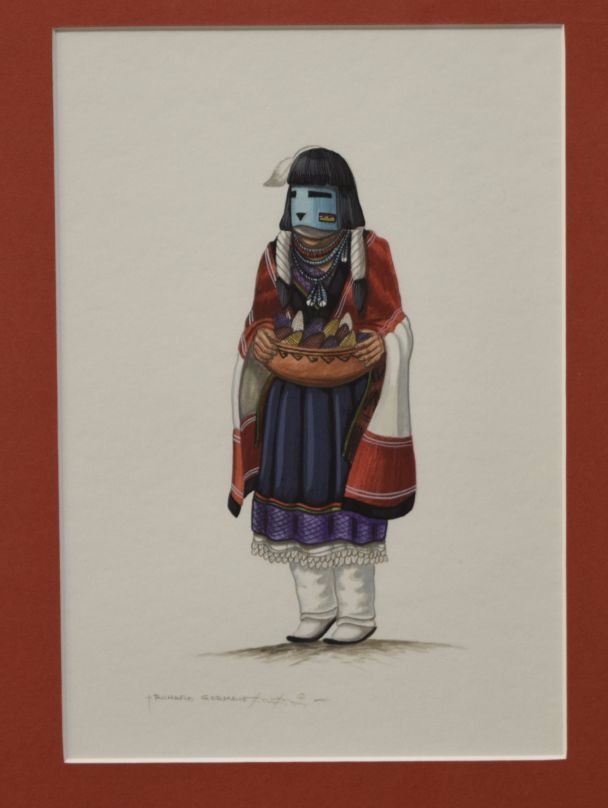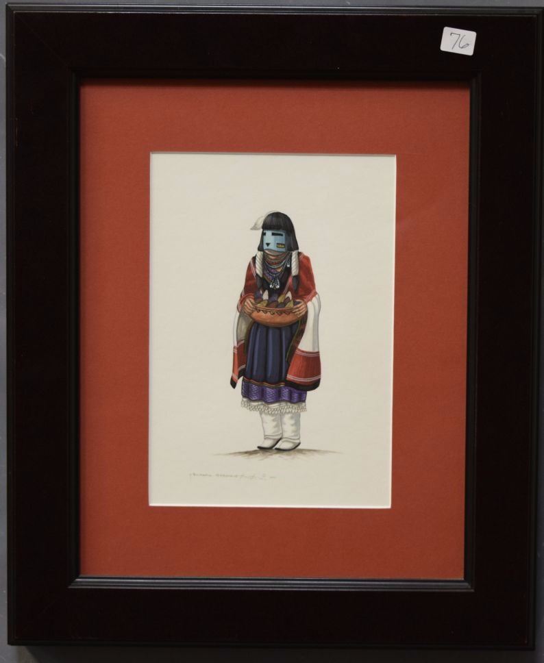 1980's original on paper depicting native woman with corn signed Richard Gorman 9'' x 6.5'' frame is 17'' x 14''