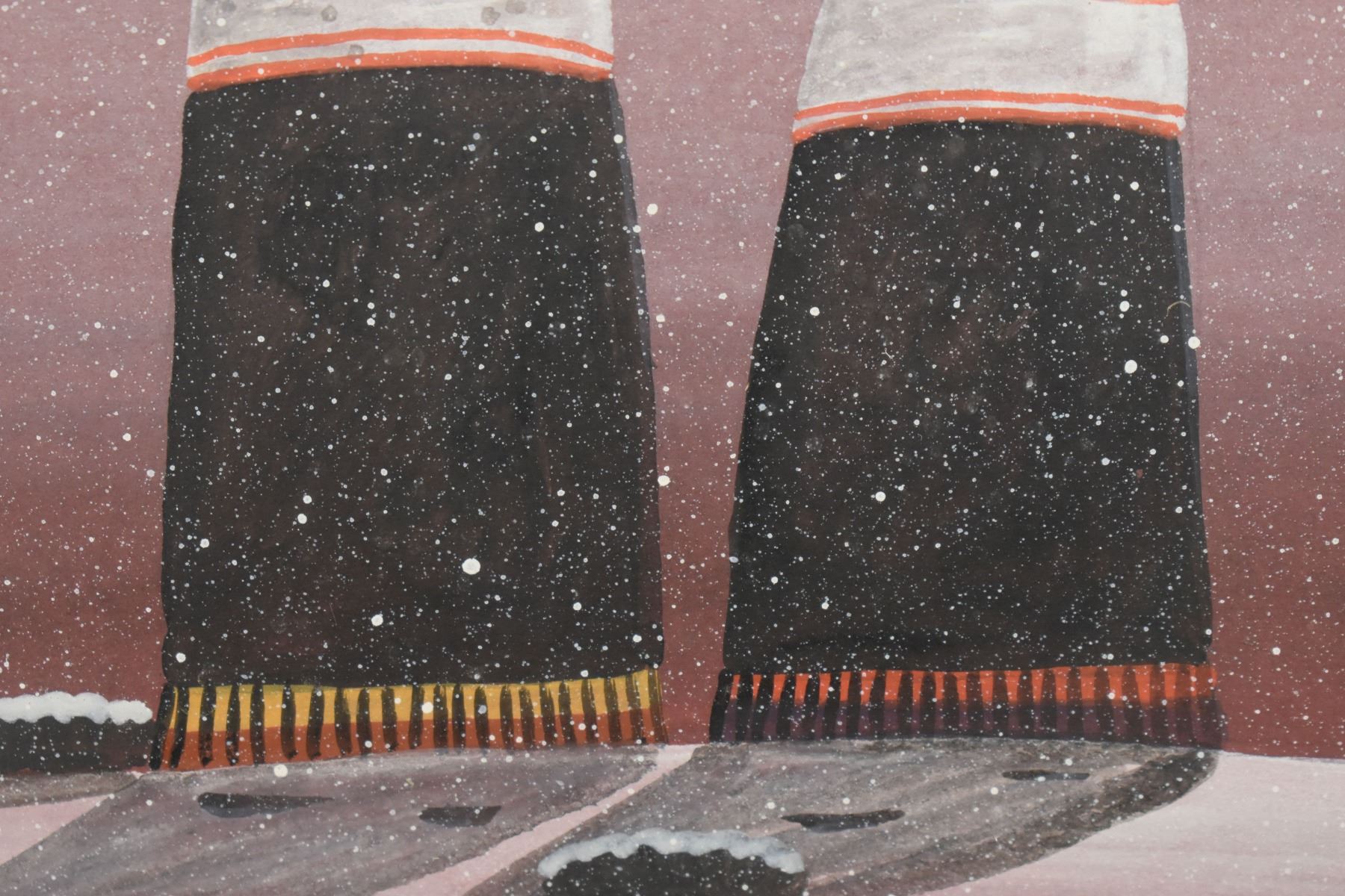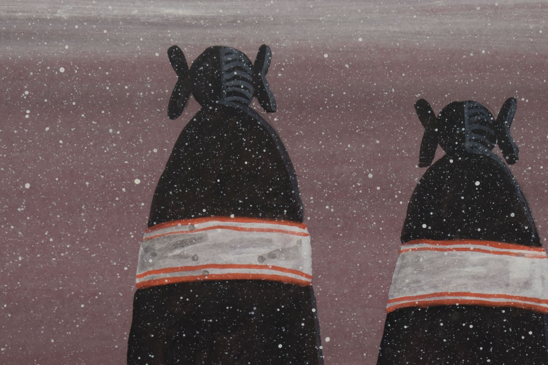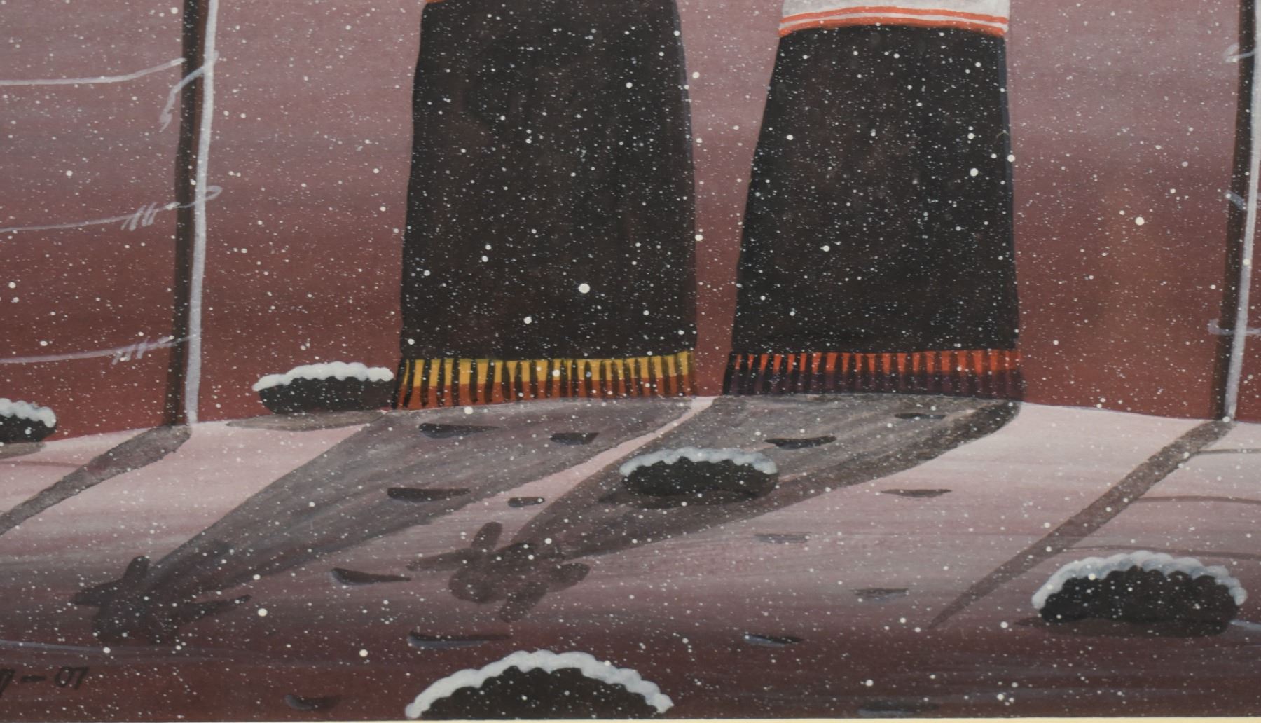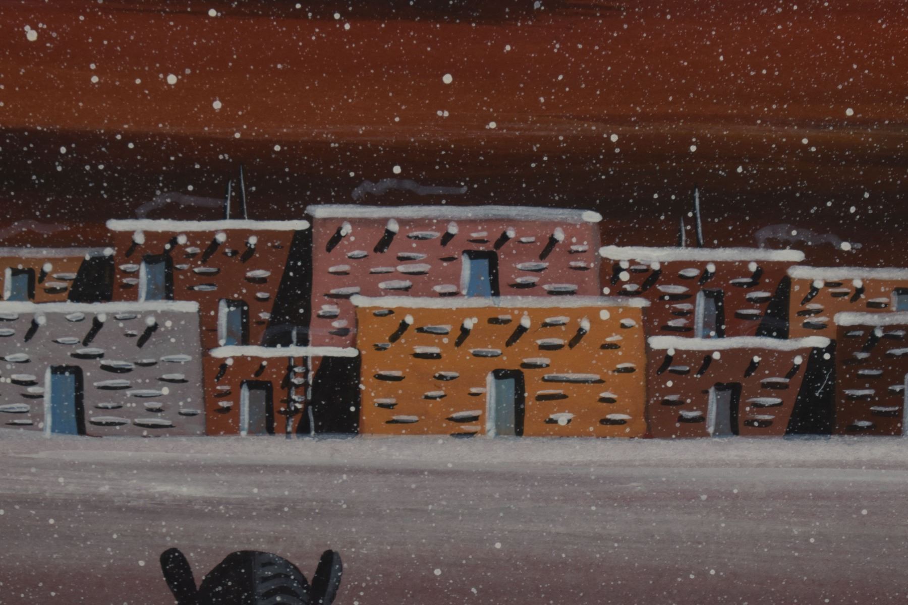 2007 Hopi. Original on paper depicting native woman and pueblo. Signed Benson Halwood. 12'' x 12'' frame size 19'' x 19''