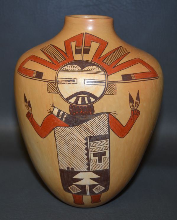 1980's hand made and painted polychrome full bodied polik mana kachina figures signed Sahmie 10" x 6.5"