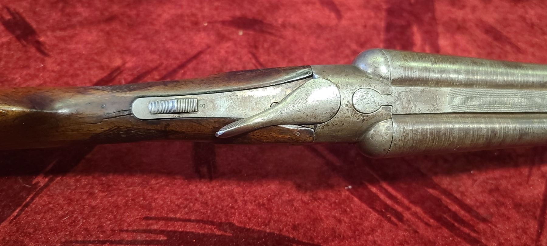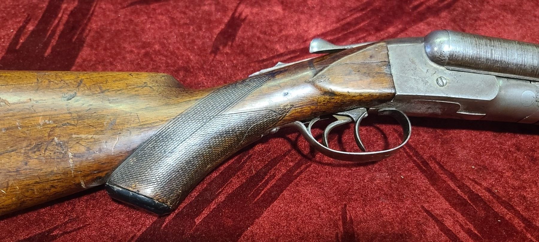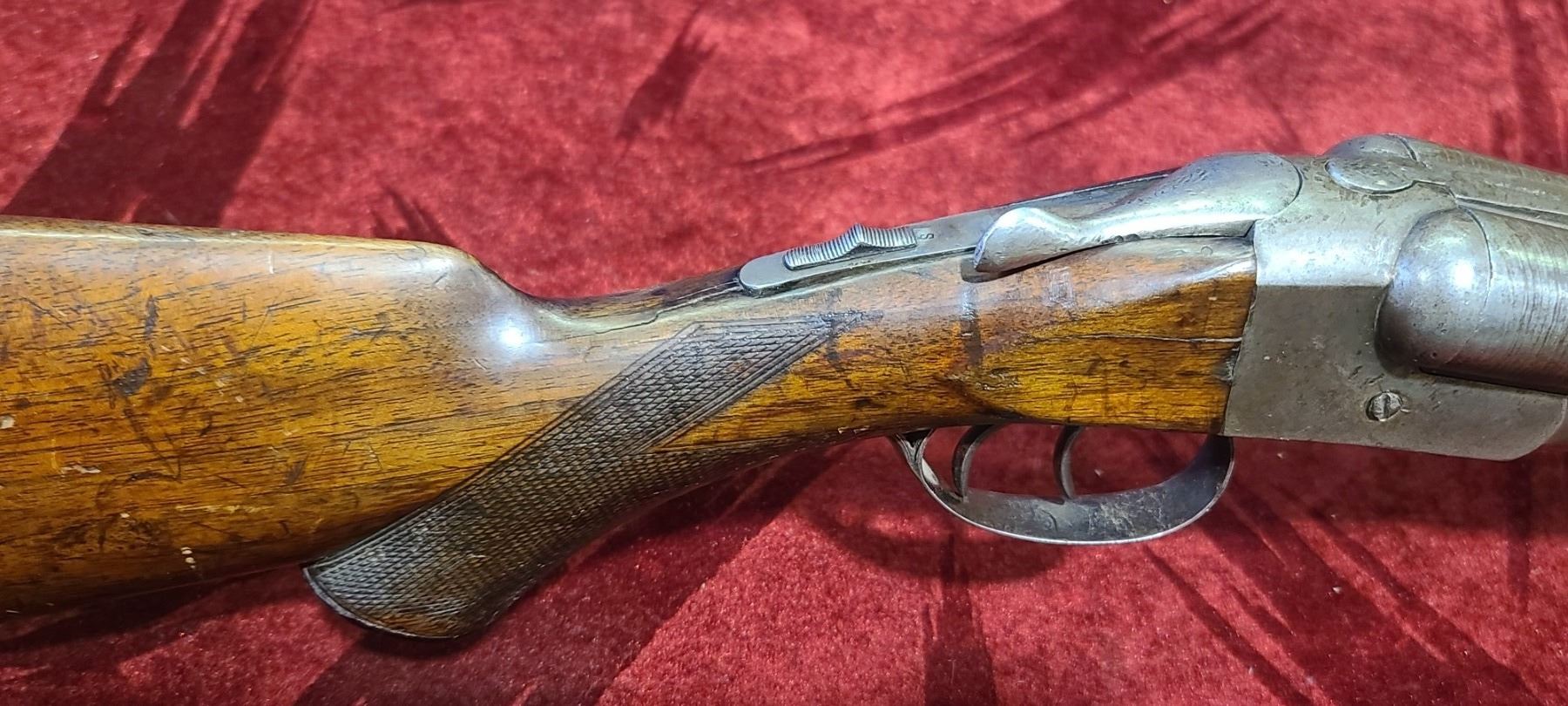 HOPKINS &ALLAN 12 GA DAMASCUS WALL HANGER 30 INCH MISSING FIREPIN, BARREL LOOSE SN 29177