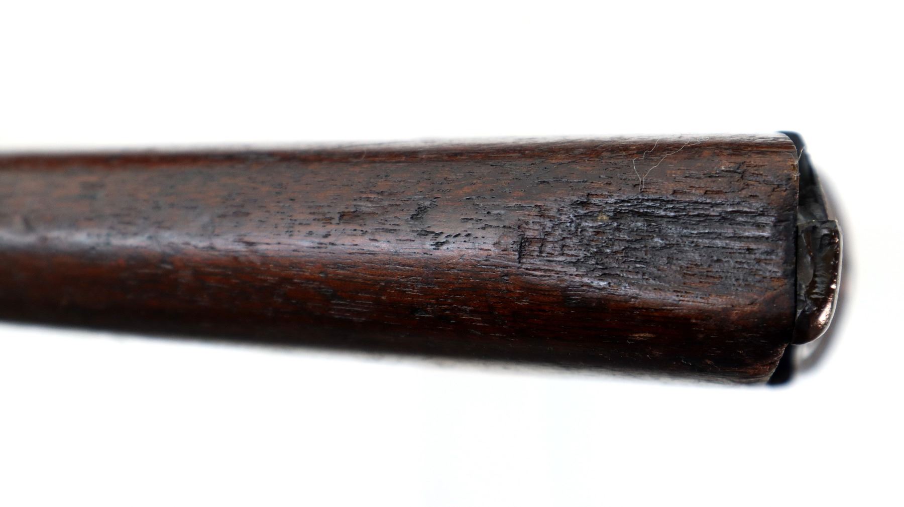 Wear: Metal finish turning silver grey with pitting, light rust, scratches, handling marks and wear. Stocks show marks, scratches and wear.