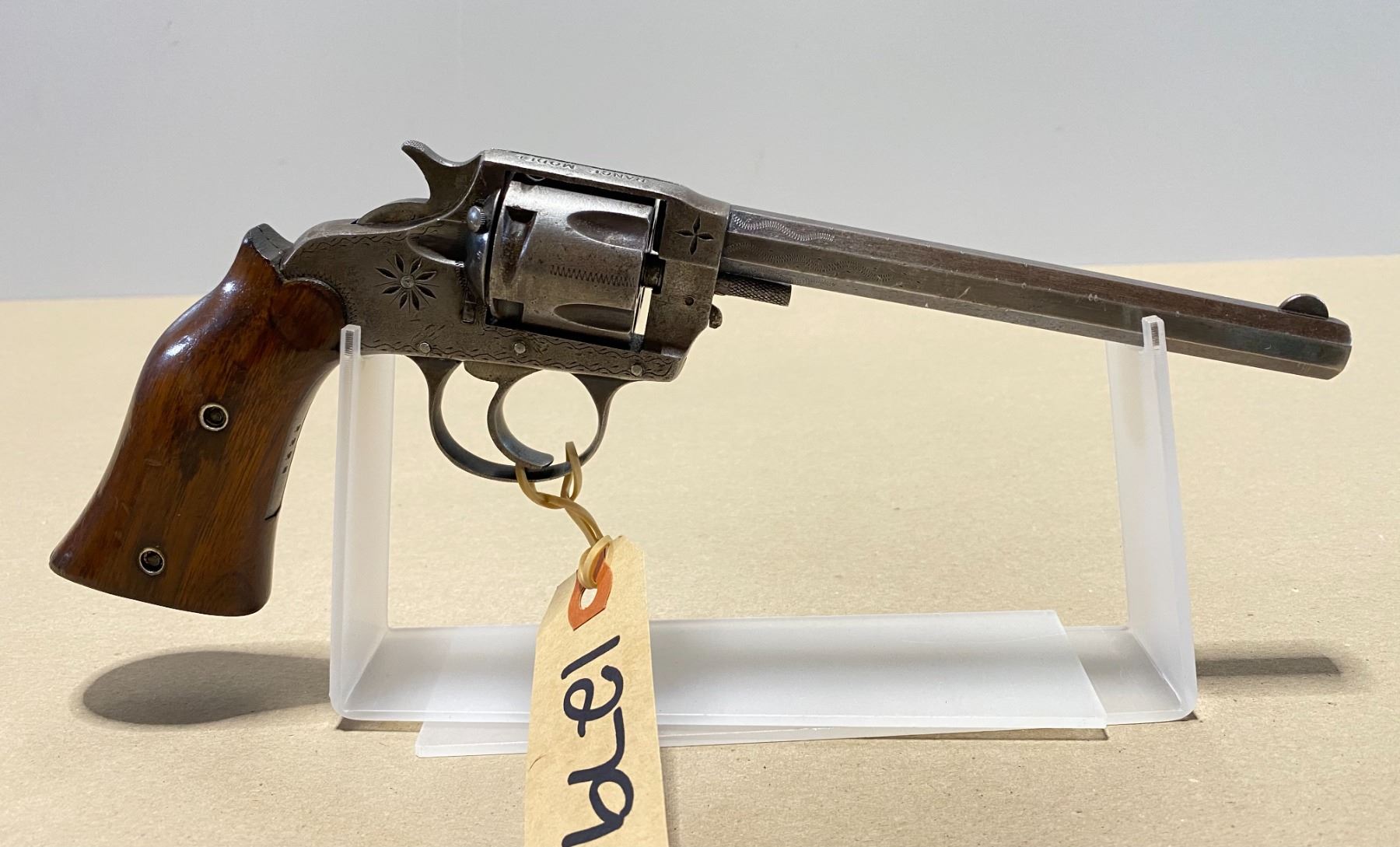 SPECS: 152 MM OCTAGON BARREL. 5 SHOT REVOLVER. EXTRAS: NONE. CONDITION: P - F OVERALL. PARTS GUN. CYLINDER DOESN'T ADVANCE. S/N: 2228 RESTRICTED.