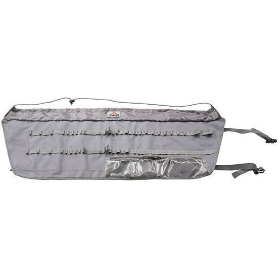 The Hoppe's Ready Roll will keep your cleaning tools organized on the range or out in the field. Before heading out, add your tools to the elastic accessory slots and keep track of any loose, small parts by using the zipper compartments, then roll up the Ready Roll and secure it closed with the attached nylon straps and buckles. If you need to take more than just your cleaning tools with you, install the Ready Roll into any standard five gallon bucket by lining the inside of the bucket with the Ready Roll, secure the attached band around the top of the bucket, and cinch the cord lock to keep the Ready Roll in place. Wherever you want to go, the Ready Roll is built to keep your tools where you need them.