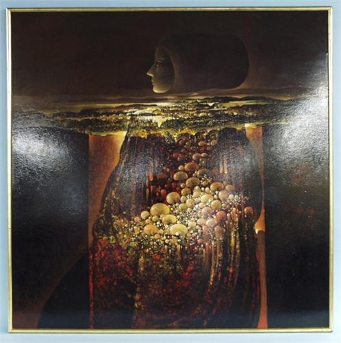 HORATIO BLAS MAZZA - Important 20th century Latin American school. "La Creacion de la Mujer, N. 2." A large mixed media composition on panel. Signed and dated 88 lower centre. Signed, titled and dated on reverse. 48" x 48". In gilt frame.