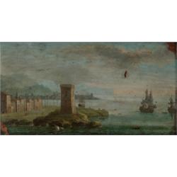 HORAZIO GREVENBROECK the Netherlands 1670-1730 Fartyg vid medelhavshamn Oil on copper, 16 x 30 cm; loss of paint EXPERTISE: Cabinet Turquin, Mauduit, Etienne, Paris.
