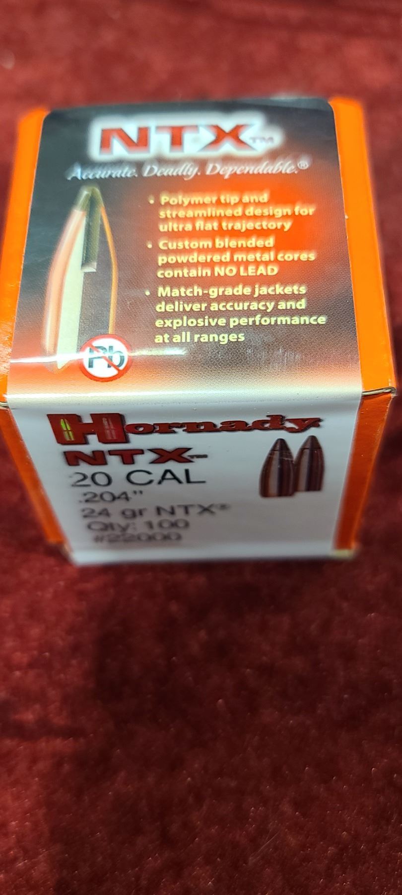 HORNADY 20CAL .204 DIA 24GR NTX BULLETS QTY 100
