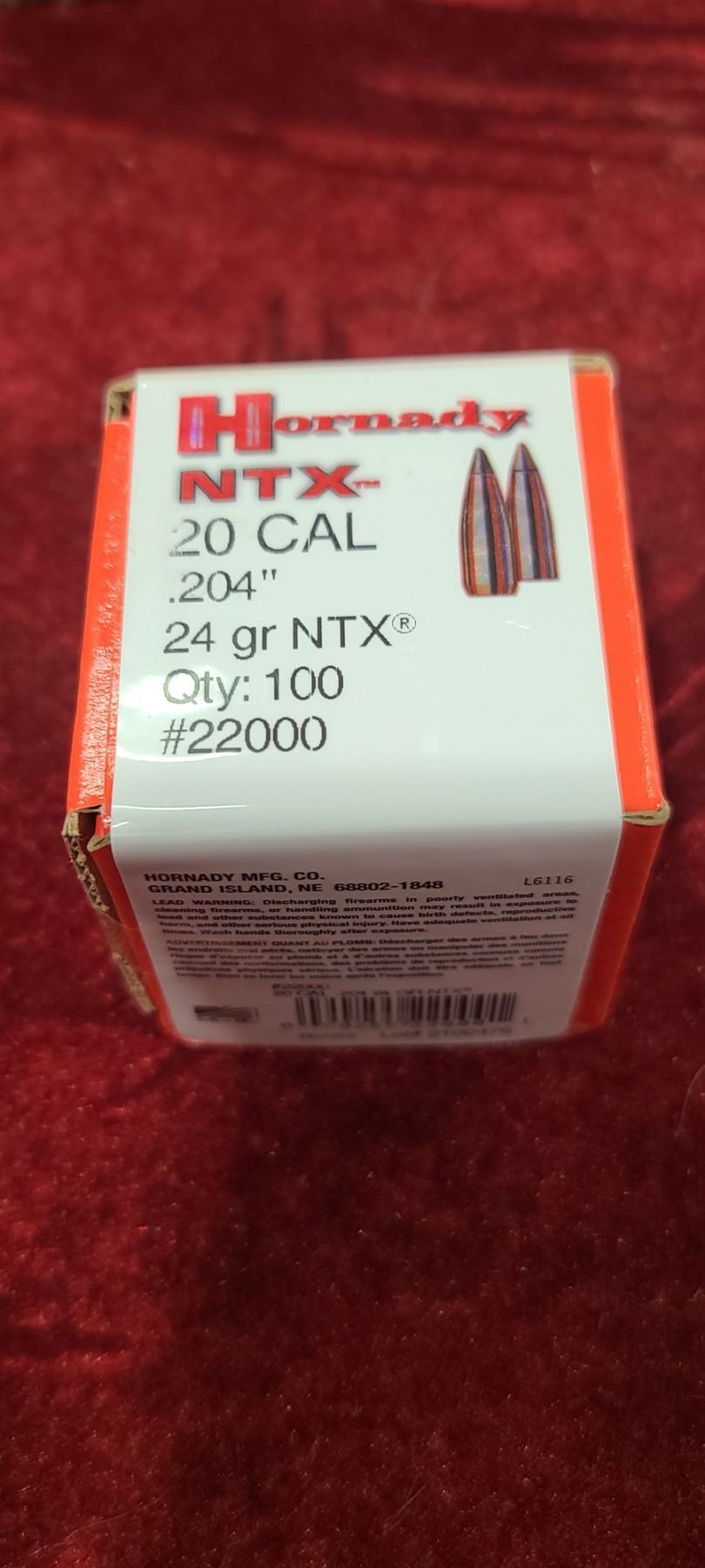 HORNADY 20CAL .204 DIA 24GR NTX BULLETS QTY 100