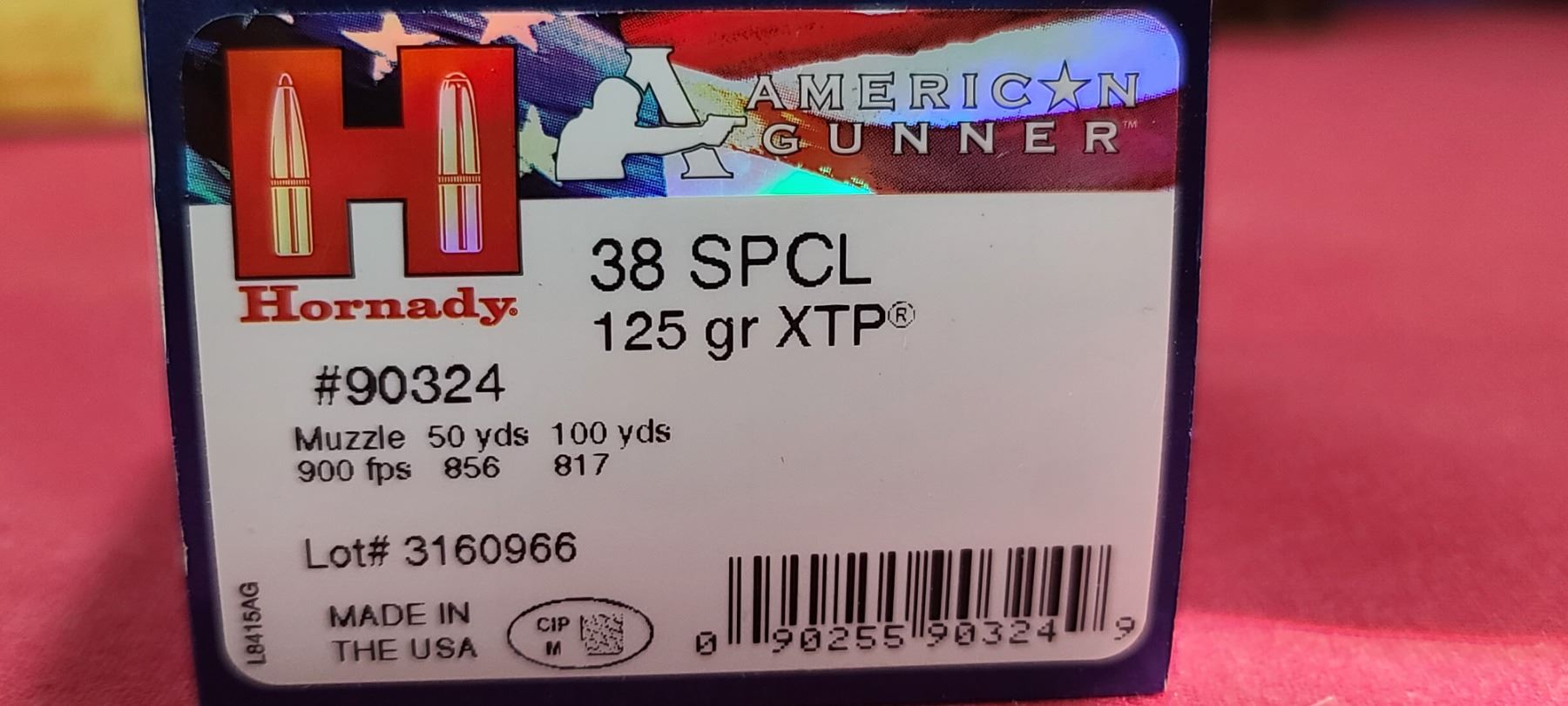 HORNADY .38 SPCL 125GR XTP 25 ROUNDS - NO SHIPPING ON THIS LOT