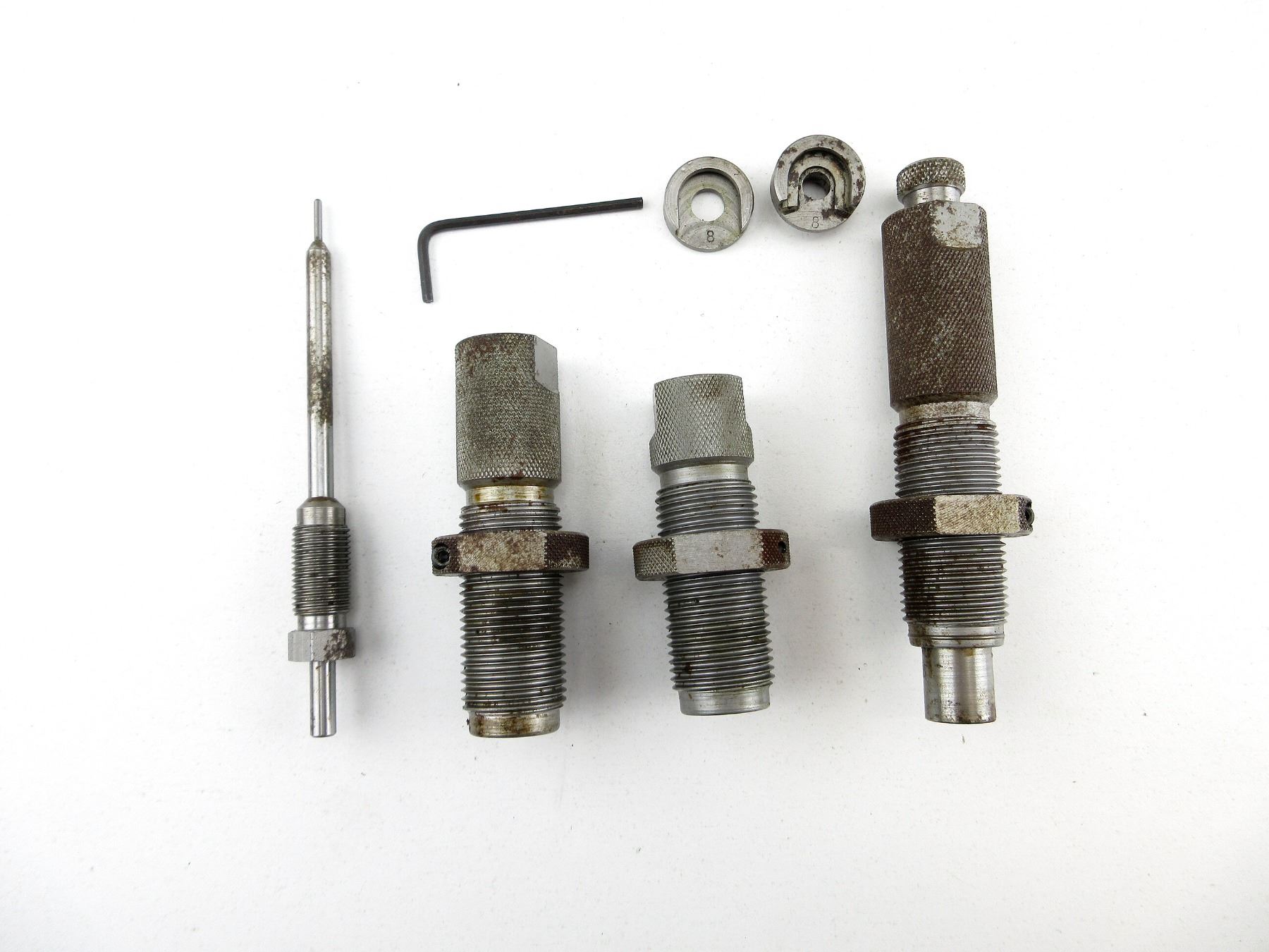 LOT INCLUDES; (1) 3-PIECE RELOADING DIES WITH (2) #8 SHELL HOLDERS. SEE PHOTOS.