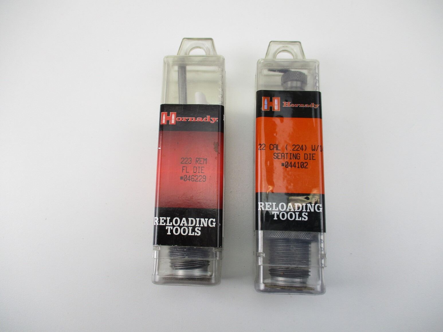 HORNADY RELOADING DIE LOT, NEW , LOT OF (2) INCLUDING .223 REM FL DIE AND .22 SEATING DIE