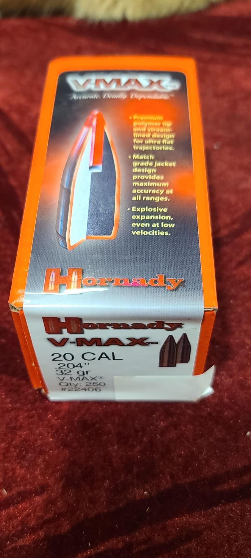 HORNADY V-MAX 20 CAL .204 DIA 32 GR QTY 250