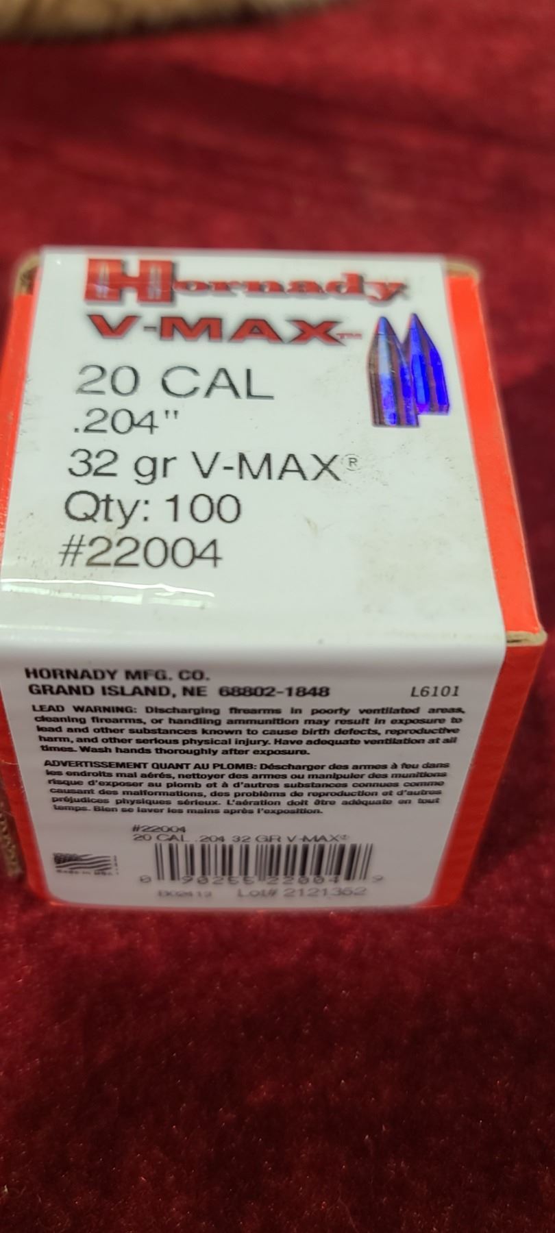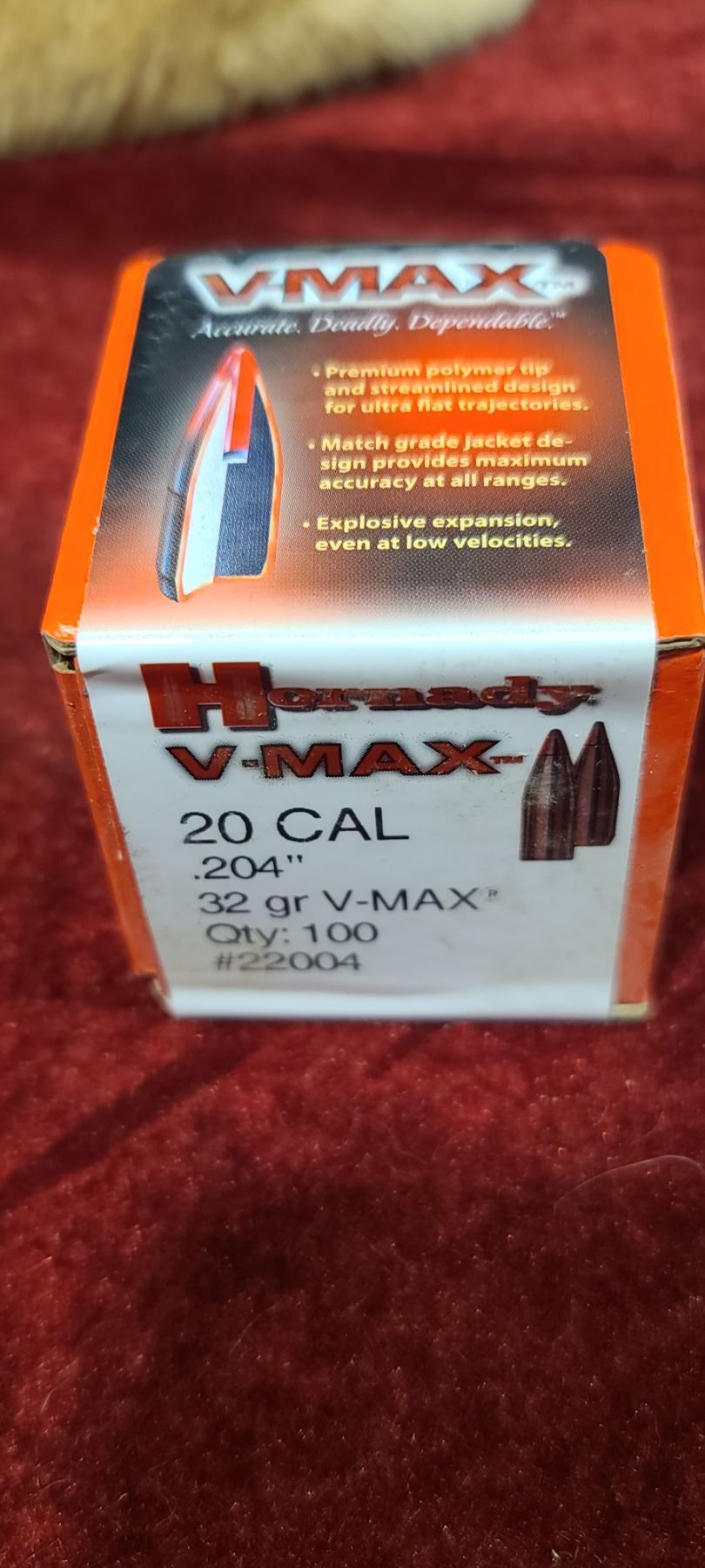 HORNADY V-MAX 20 CAL .204 DIA 32GR QTY 100