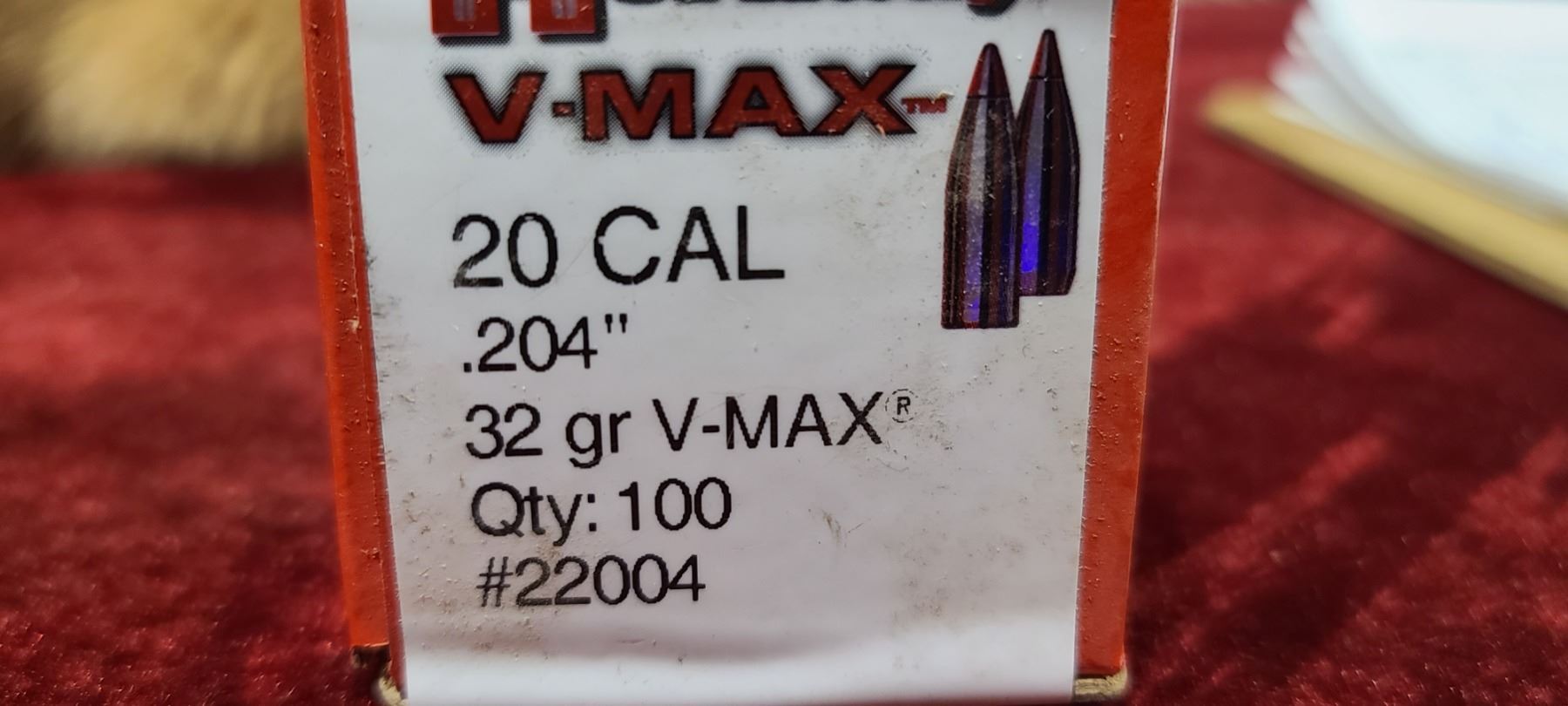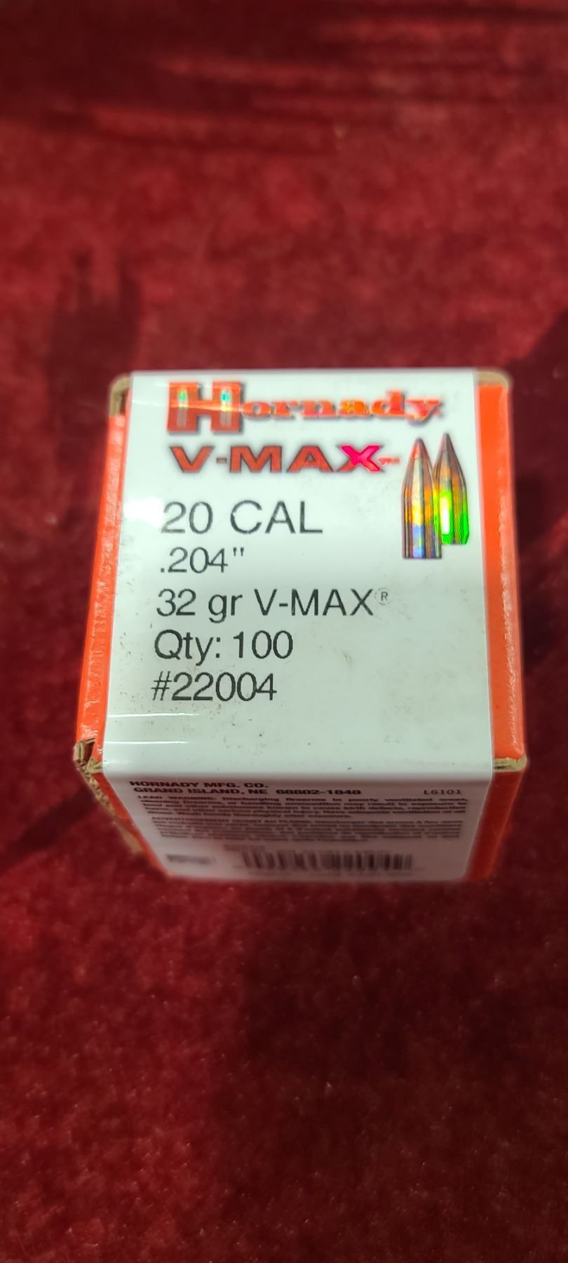 HORNADY V-MAX 20 CAL .204 DIA 32GR QTY 100
