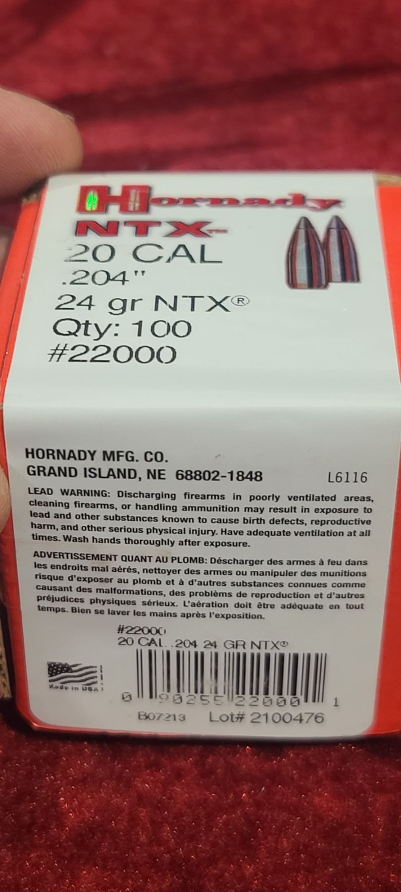 HORNADY V-MAX 204CAL 24GR NTX BULLETS QTY 100