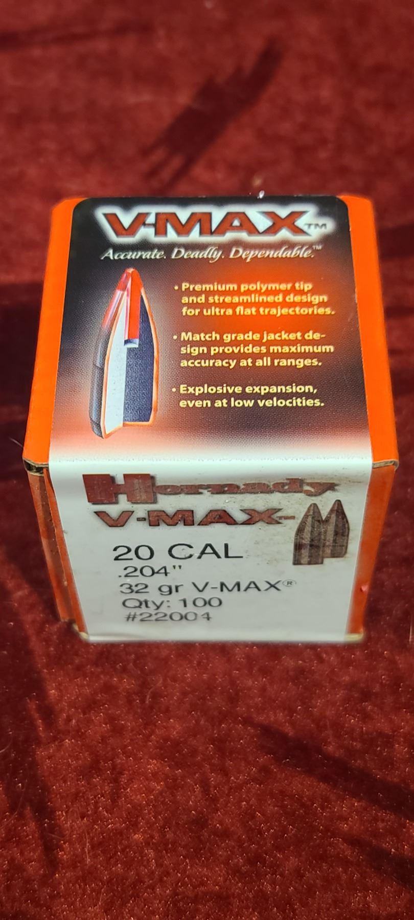 HORNADY V-MAX 204CAL 32GR BULLETS 100 COUNT