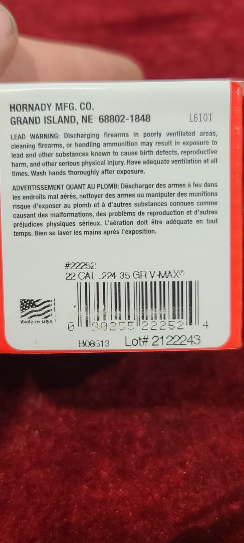 HORNADY V-MAX 22CAL .224DIA 35GR QTY 100