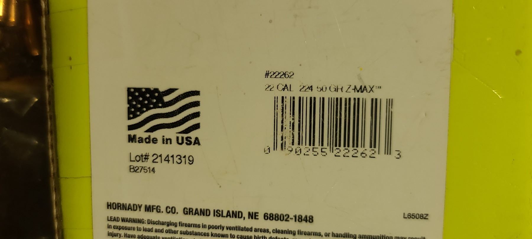HORNADY Z-MAX 22CAL .224 DIA 50GR QTY 250