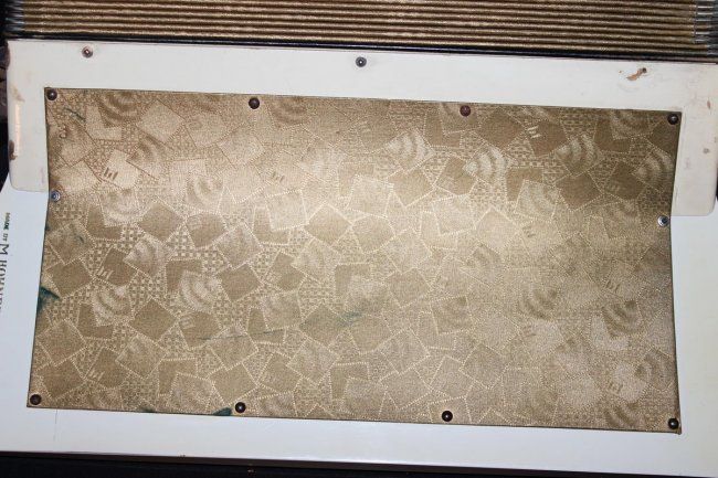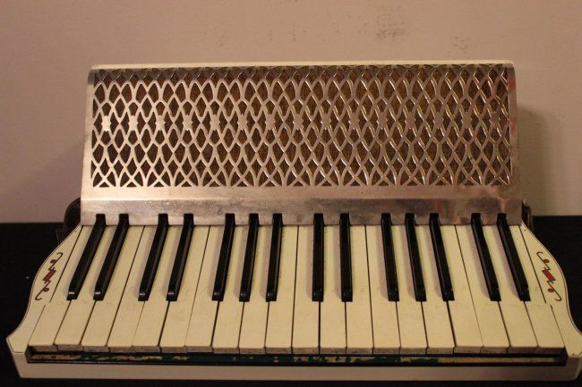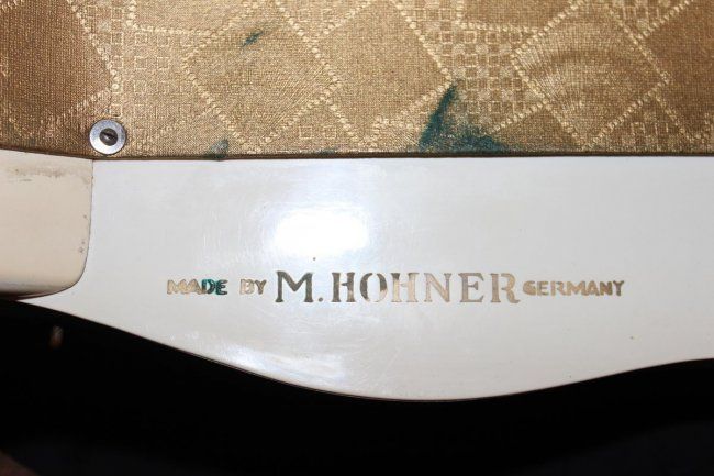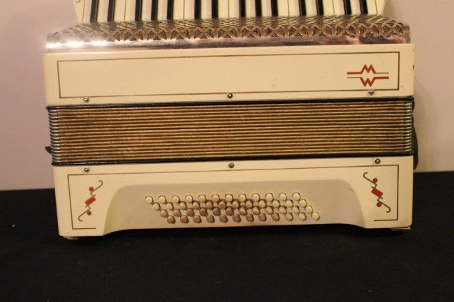 HORNER FULL-SIZE ACCORDION CREAM BLACK AND CHROME WITH INLAY ORIGINAL CASE - GOOD PLAYING CONDITION
