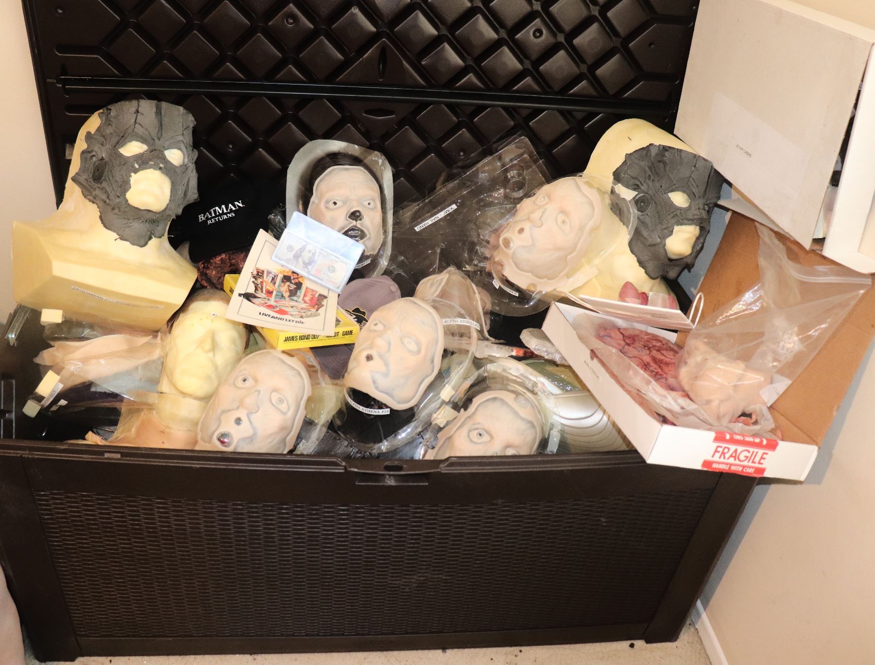 PLEASE READ FULL DESCRIPTION BEFORE BIDDING! BIN IS SO LARGE IT IS TOO HEAVY TO DUMP OUT! Contains 100's of Props, Appliances, and Promo items! Most originally priced at $100 or more!