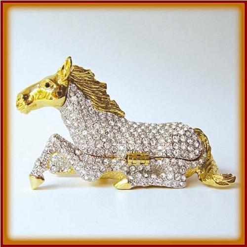 HORSE PONY 24K GOLD SWAROVSKI CRYSTAL JEWELRY BOX