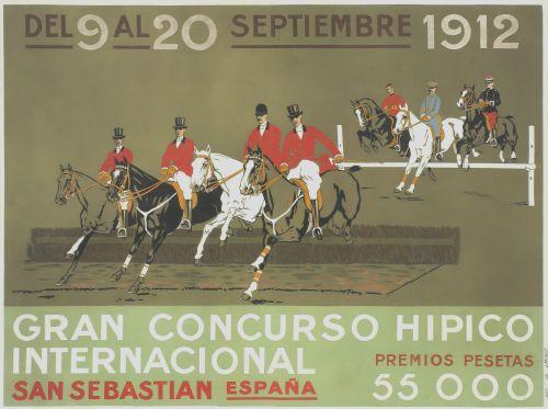 GRAN CONCURSO HIPICO INTERNACIONAL. SAN SEBASTIAN. 1912. 121x90cm. (47,8x35,5in.). Litografía. B. Diversas restauraciones. Entelado.