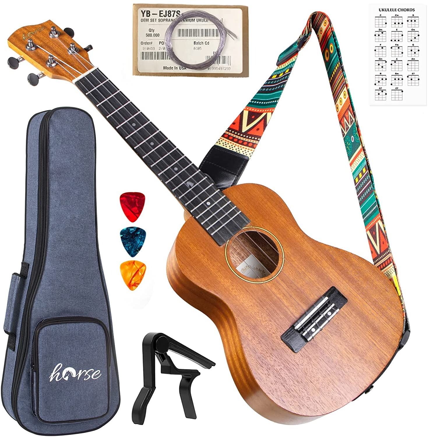 HORSE UKULELE WITH CASE AND ACCESSORIES