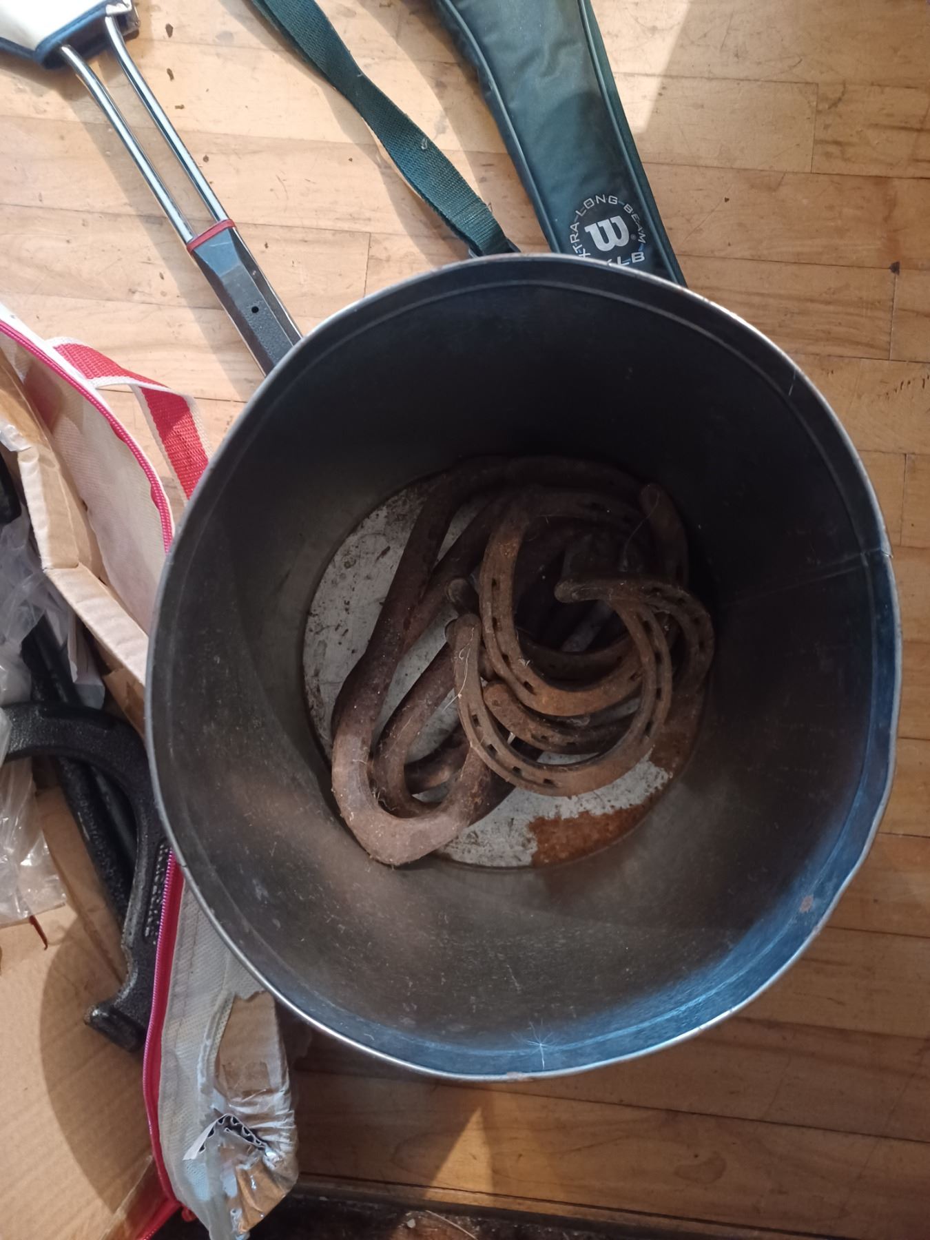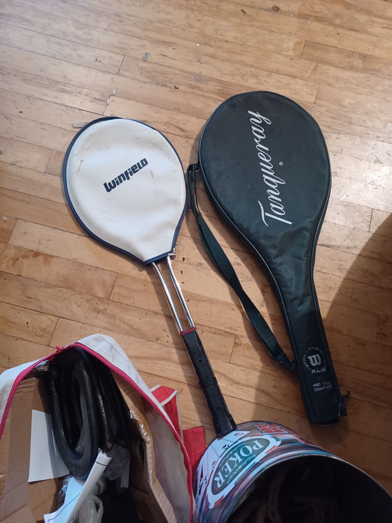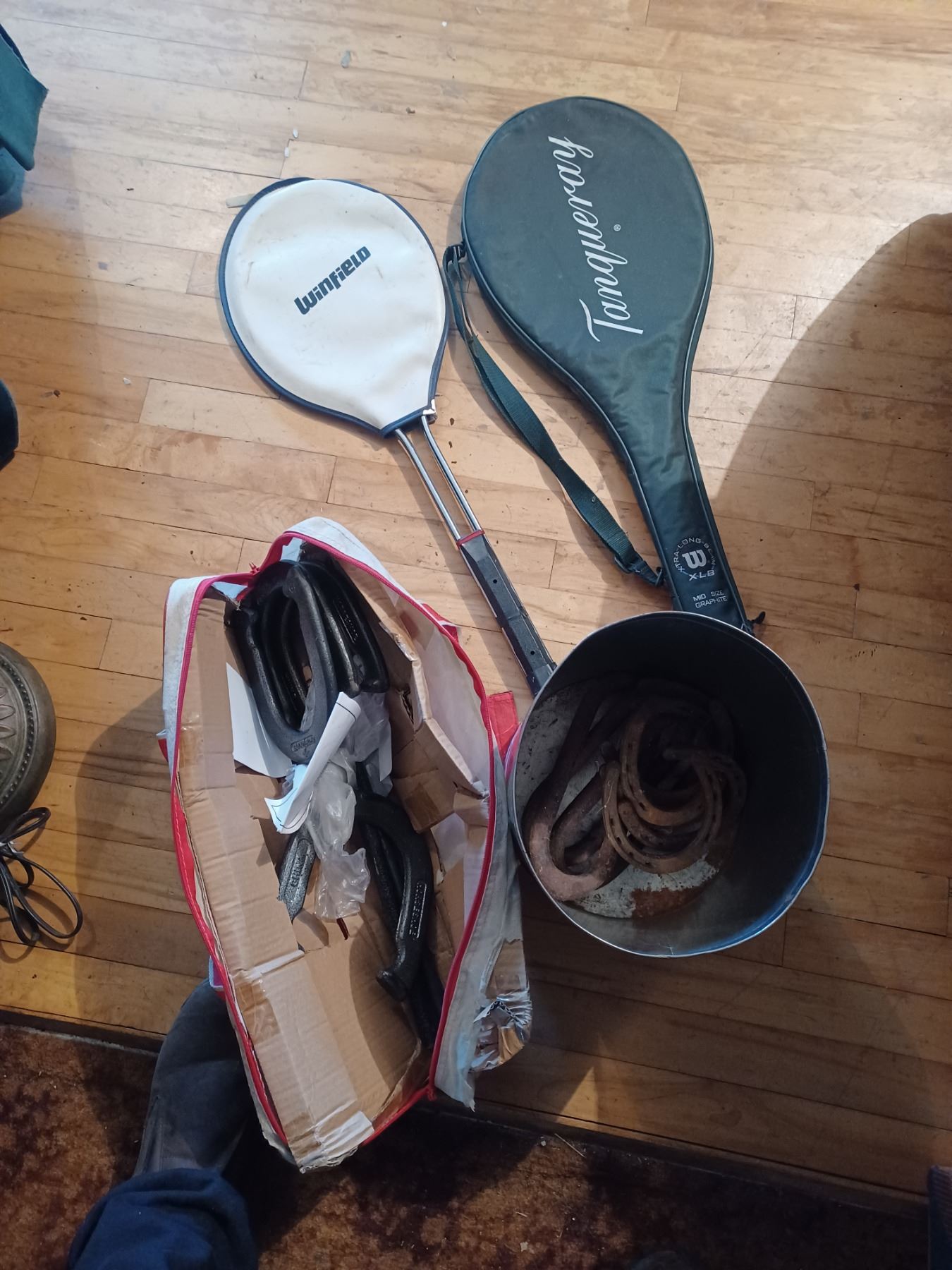 HORSESHOE GAME, TIN CAN AND TENNIS RACKET