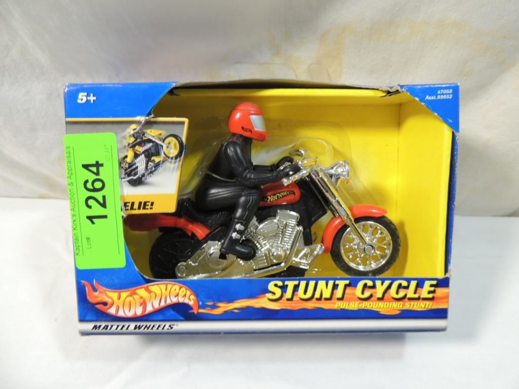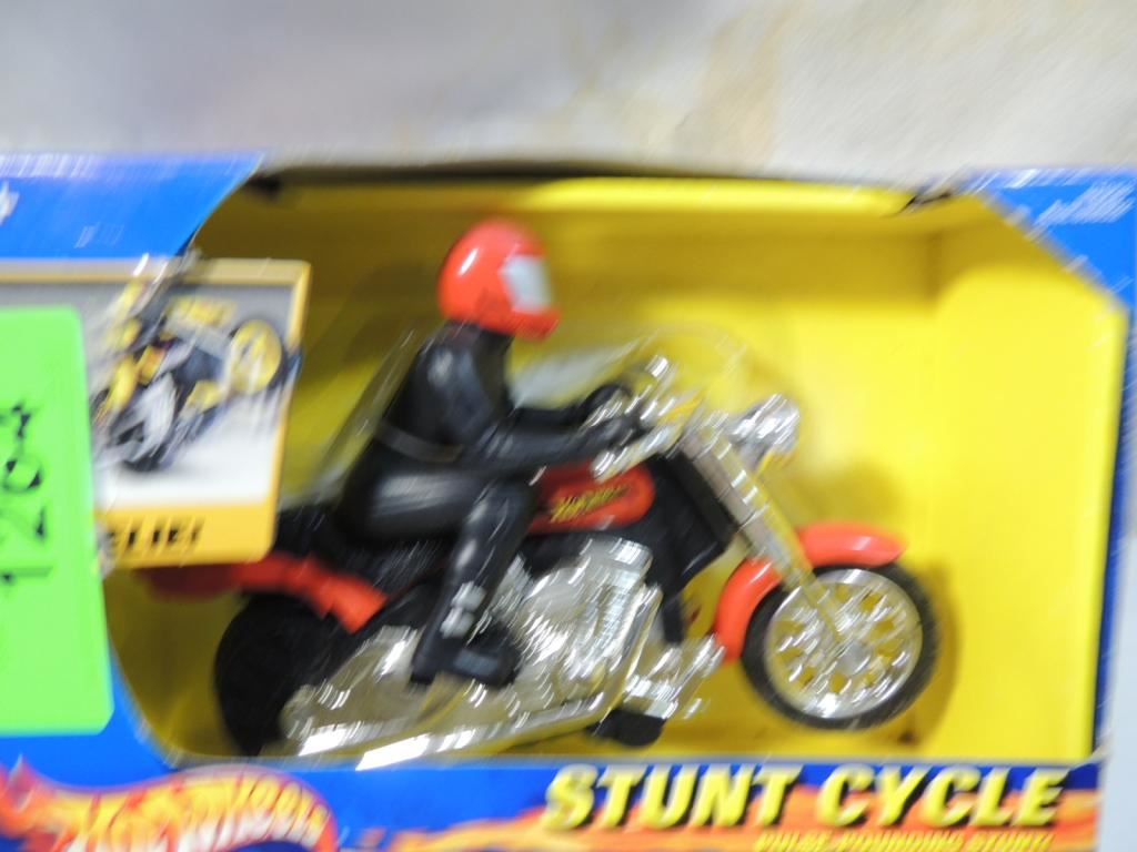HOT WHEELS STUNT CYCLE PULSE POUNDING STUNT REV IT UP.. WATCH IT POP A WHEELIE AND SPEED AWAY. FLIPPING, STUNT WHEELIE, SPIN. COLLECTIBLE AS SHOWN SEE PHOTO FOR MORE DETAILS.