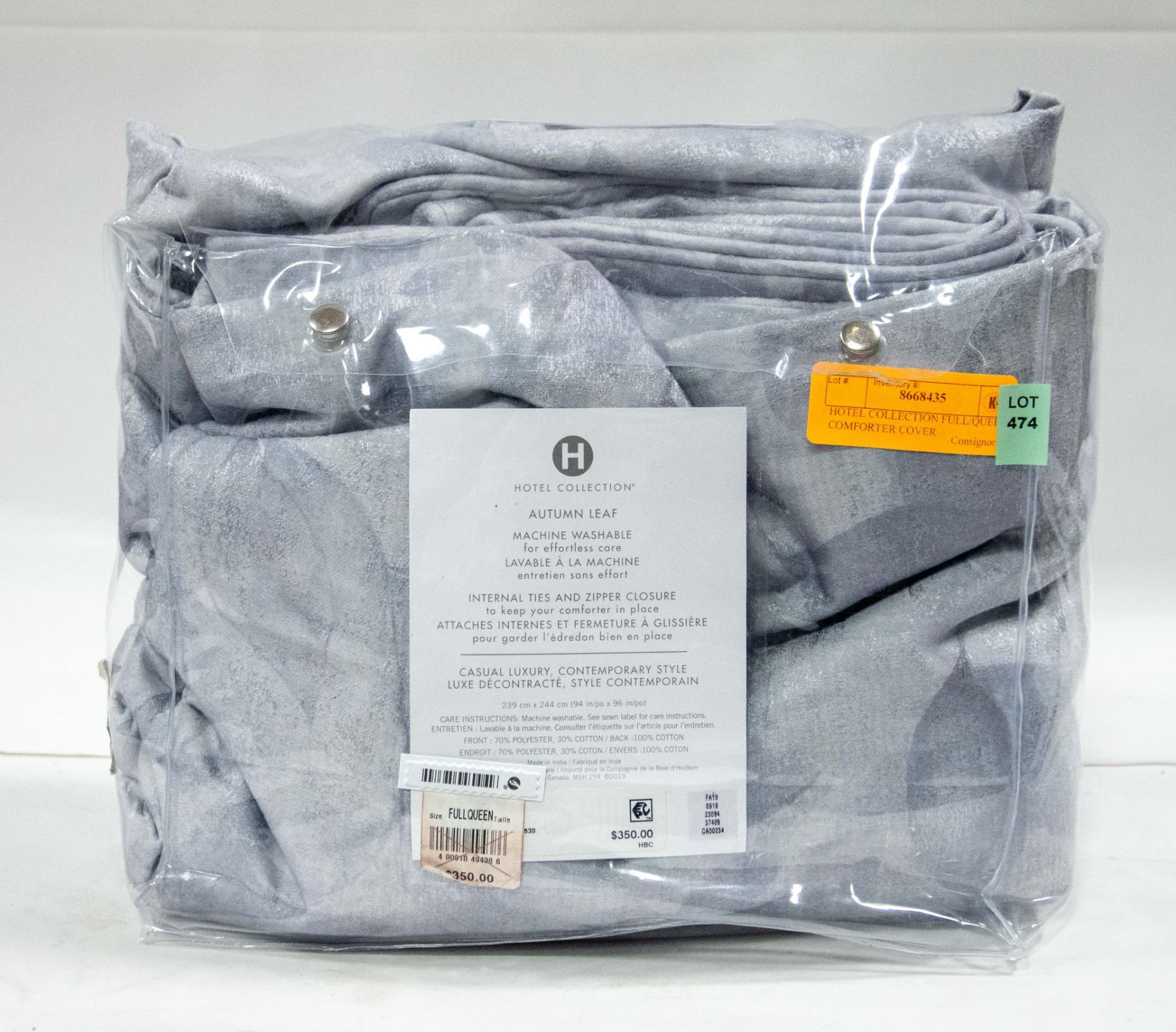 AUTUMN LEAF DESIGN, INTERNAL TIES AND ZIPPER CLOSURE, MACHINE WASHABLE, HBC SES, MSRP. $350.00 **ALL ITEMS MUST BE REMOVED BY 5PM SATURDAY, FEBRUARY 25TH 2023. ALL REMAINING ITEMS WILL BE SUBJECT TO A $6.00 PER DAY STORAGE CHARGE. ANY ITEMS REMAINING AFTER MONDAY, MARCH 13TH, 2023 WILL BE CONSIDERED FORFEITED. NO REFUNDS WILL BE ISSUED FOR FORFEITED ITEMS. TO SCHEDULE A PICK UP APPOINTMENT CLICK HERE