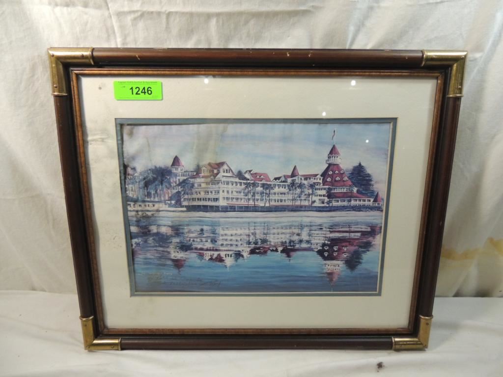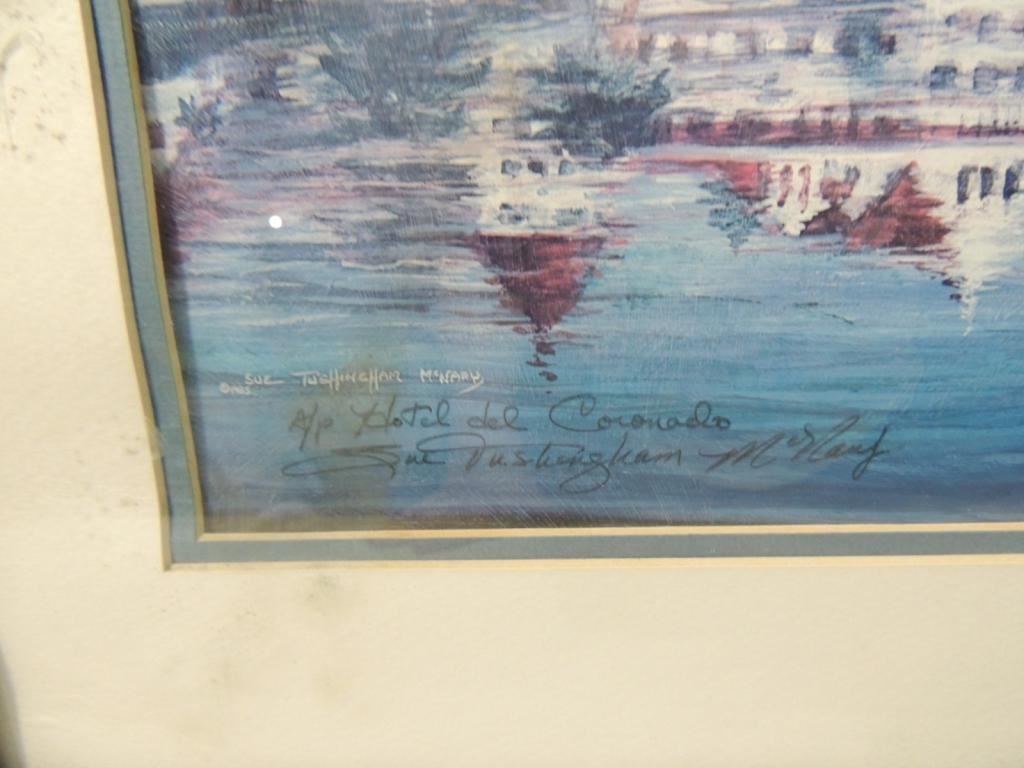 SUE TURLLINGHAM MCNARY MATTED AND FRAMED LITHOGRAPH, SOME WATER DAMAGE ON SIDE. AS SHOWN SEE PHOTO FOR MORE DETAILS.