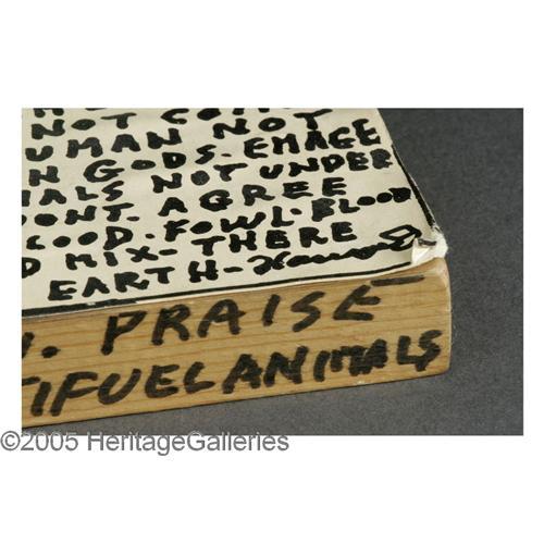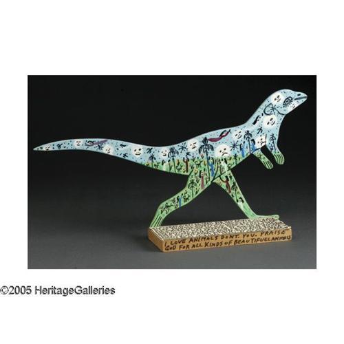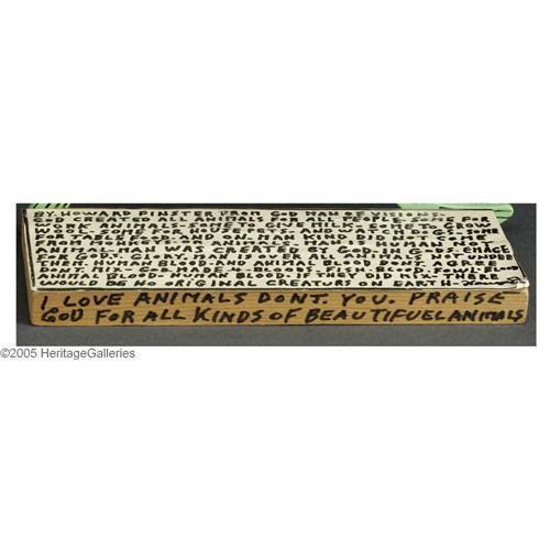 <B>HOWARD FINSTER (American 1916-2001)</B></I> <BR><I>I Love Animals, Don't You?</B></I>,1990 <BR>Mixed media on wood <BR>10in. x 18.5in. x 4in. <BR>Signed on the reverse <BR>Numbered work 13,282