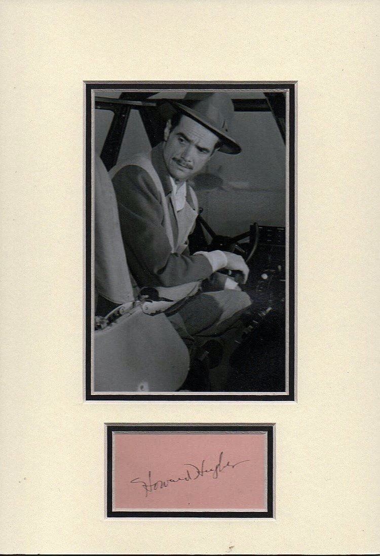 A piece of paper signed by Howard Hughes: the man who in the 1970's was the richest man in America. Mounted with a photo of Howard Hughes. 3x2 inches.