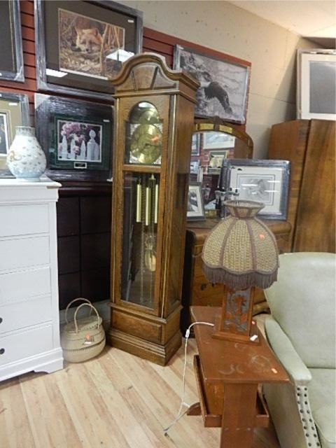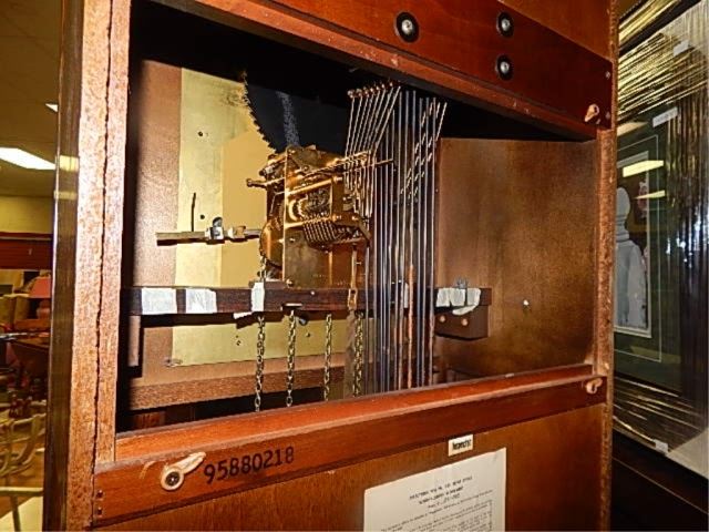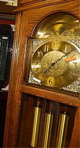 HOWARD MILLER GRANDFATHER CLOCK - WITH MOON PHASE DIAL - WITH WEIGHTA AND PENDULUM - KEY IN OFFICE - ADJUSTABLE CHIMES INCLUDING WESTMINSTER CHIMES - EXCELLENT CONDITION - ESTIMATED VALUE ~$2000