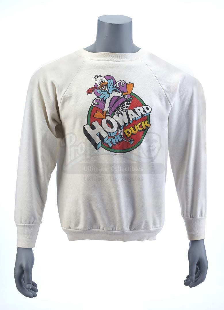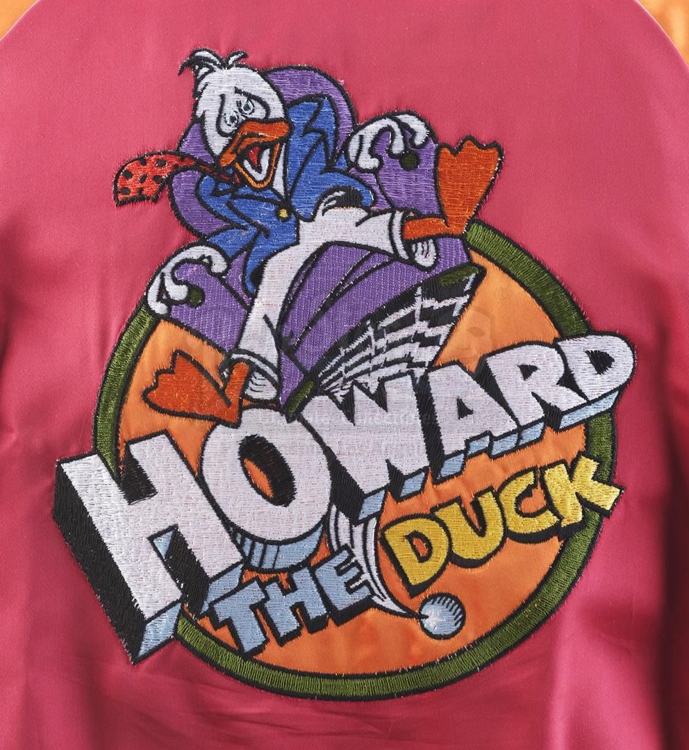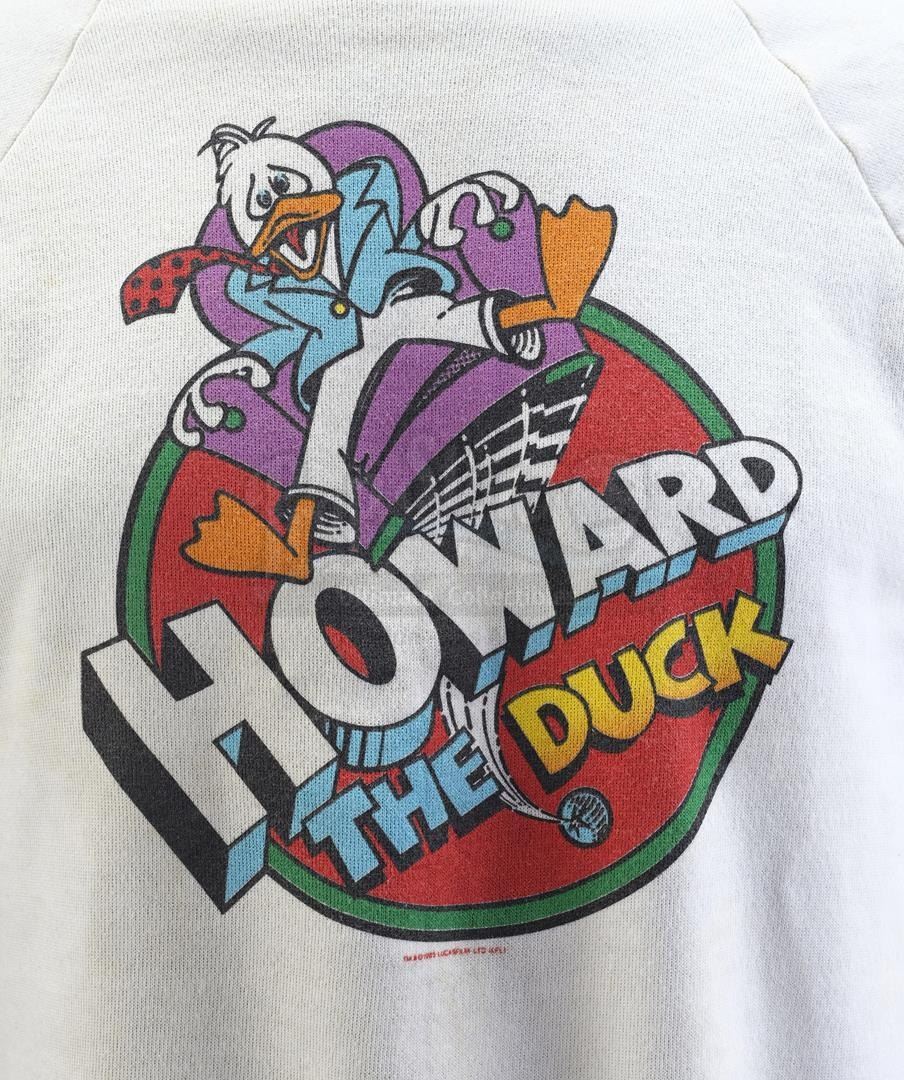 A production-made duck head appliance with a crew hat, jacket, shirt, and acrylic egg from Willard Huyck's comedy adventure Howard The Duck. A duck with humanoid characteristics was transported to Earth, where he teamed with a rock singer (Lea Thompson) to thwart an alien invasion.