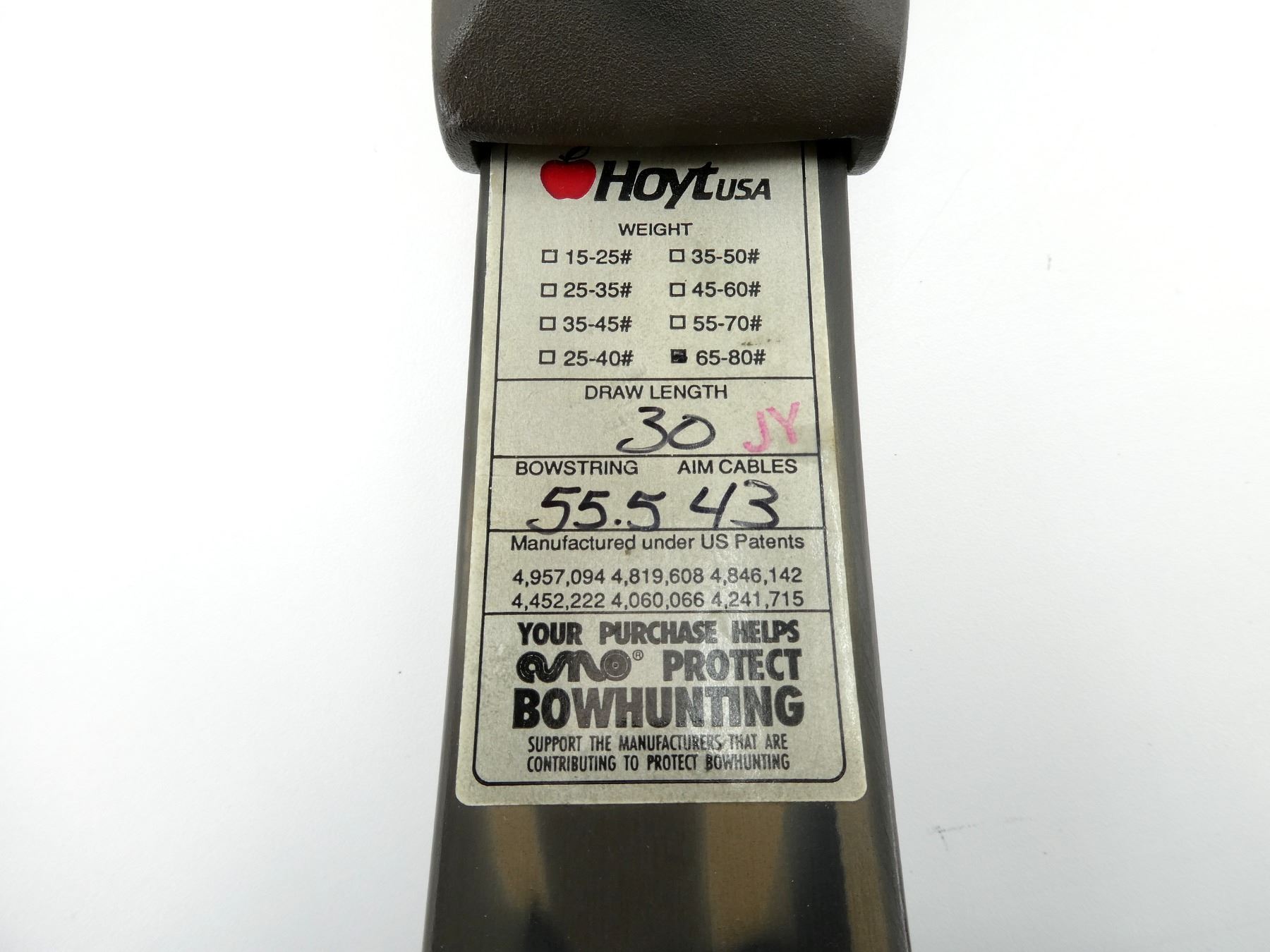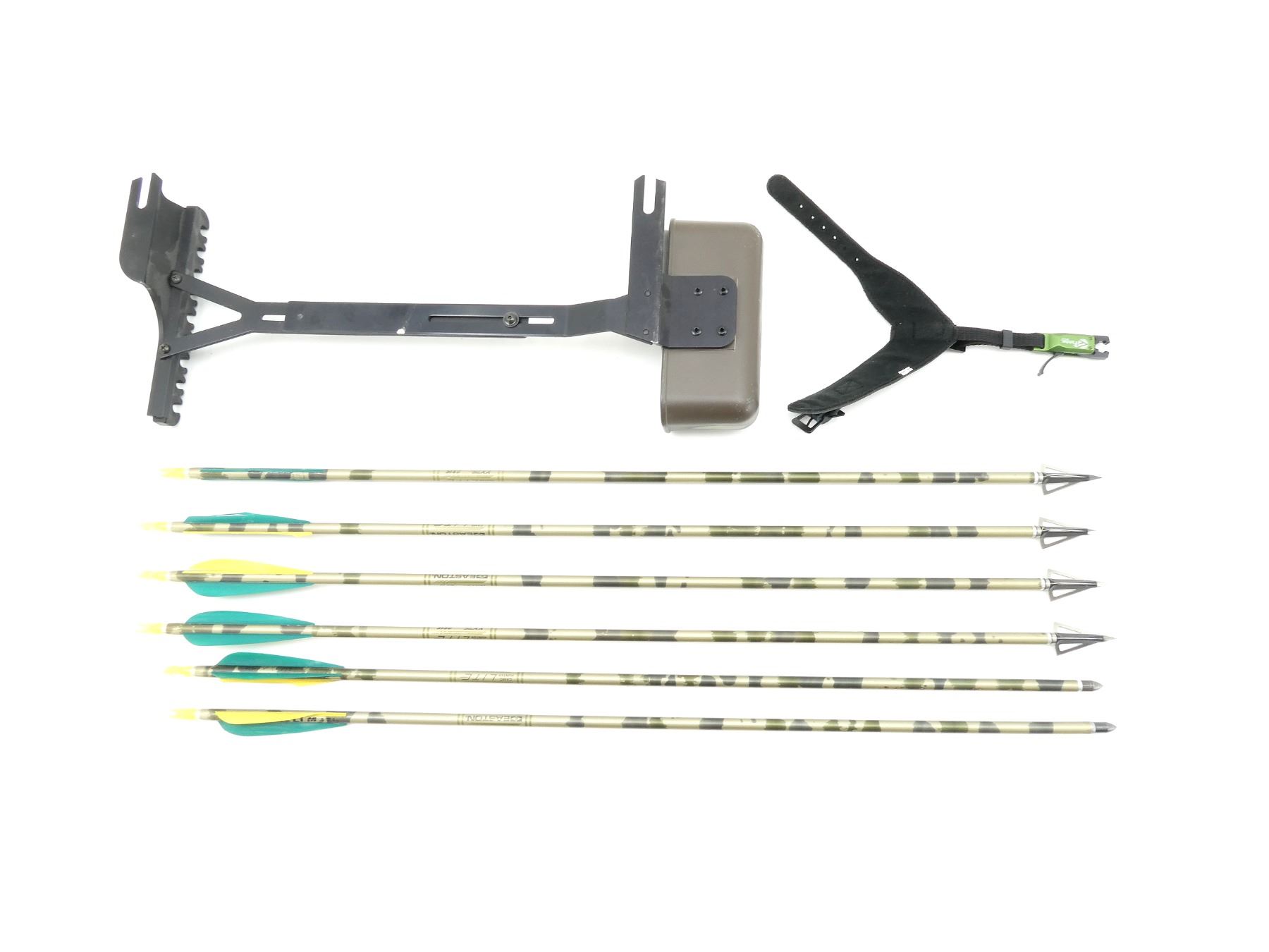 LOT INCLUDES; (1) HOYT FAST FLITE SUPER SLAM COMPOUND BOW, APPROX. DRAW WEIGHT 65-80#, APPROX DRAW LENGTH 30", STRING LENGTH 55.5", AIM CABLES 43", (5) PIN SIGHTS, (1) ARROW RELEASE, (1) QUIVER, (6) EASTON XX752315 ARROWS, APPROX. OVERALL LENGTH 26 1/4", (4) FIXED BLADE BROADHEADS, (2) FIELD TIPS, (1) SOFT PADDED BOW CASE, ZIPPERED, (1) OUTSIDE ZIPPERED POCKET, APPROX OVERALL LENGTH OF BOW 43", SHOWS WEAR AND TEAR FROM USAGE, SEE PHOTOS.