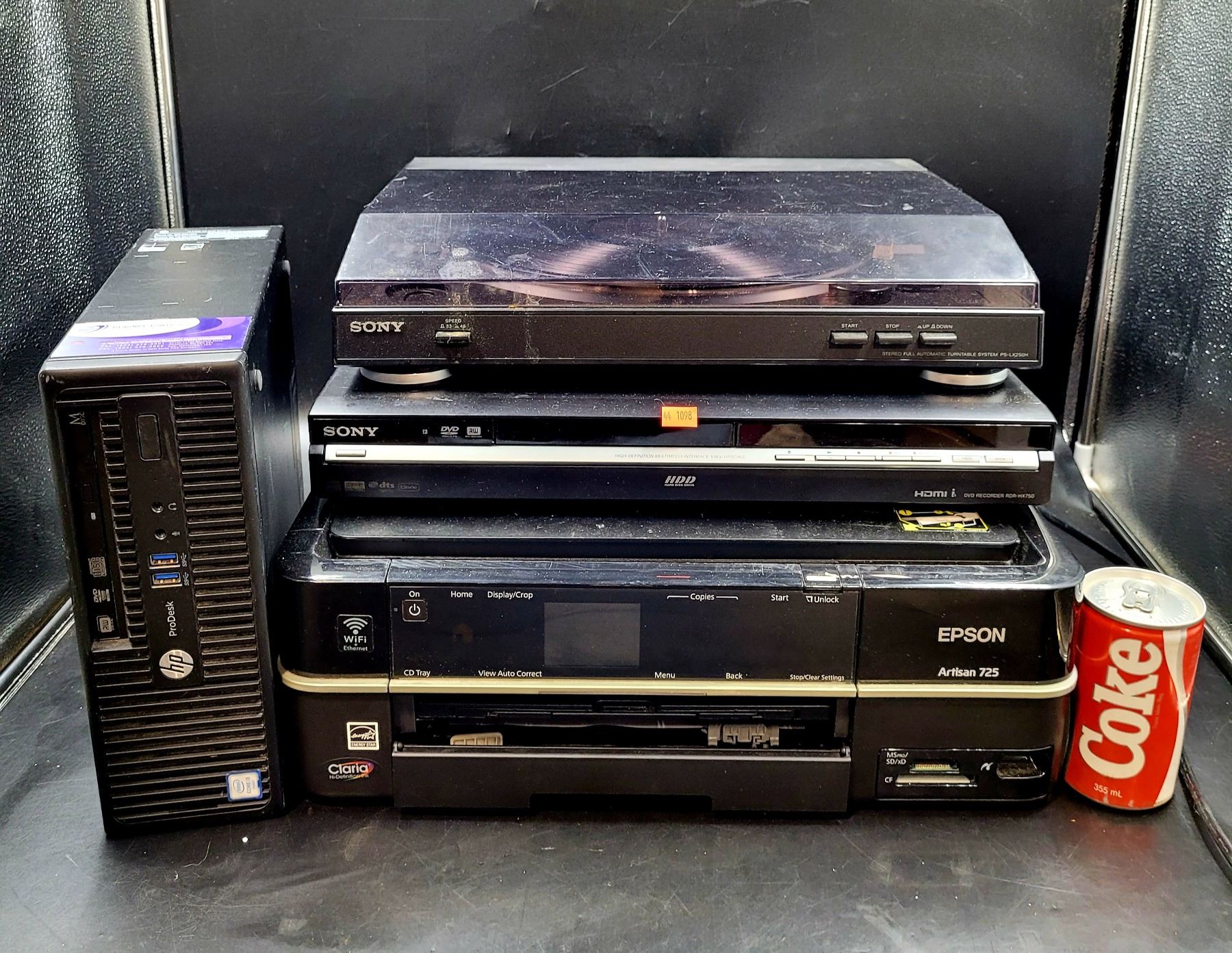 HP Computer, Sony Turntable, DVD Recorder & Epson Printer