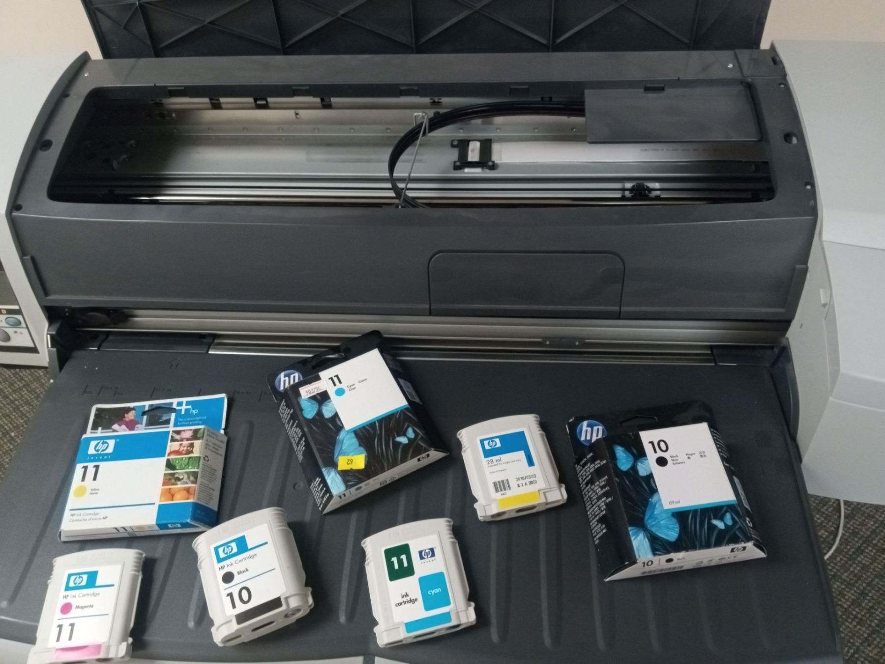 HP Designjet III with several replacement ink & 3 Boxes of Printer Parts